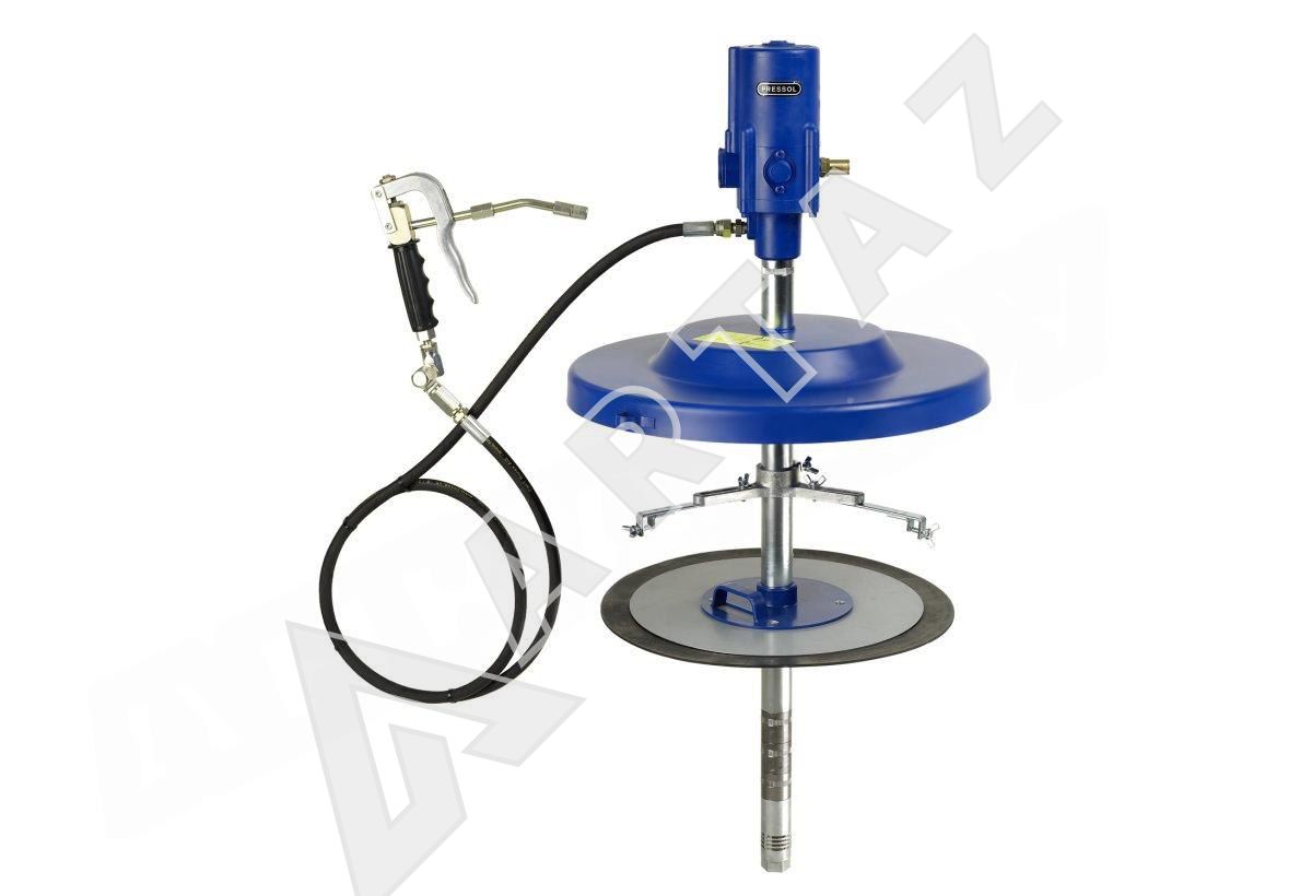 Пневматический нагнетатель смазки Pressol 18764 051 предназначен для эффективной и быстрой подачи консистентных смазок из бочек вместимостью 20, 25 и 50 кг. Устройство подходит для промышленных и сервисных предприятий, автосервисов и станций ТО, обеспечивая удобство в работе с большими объемами смазочных материалов.