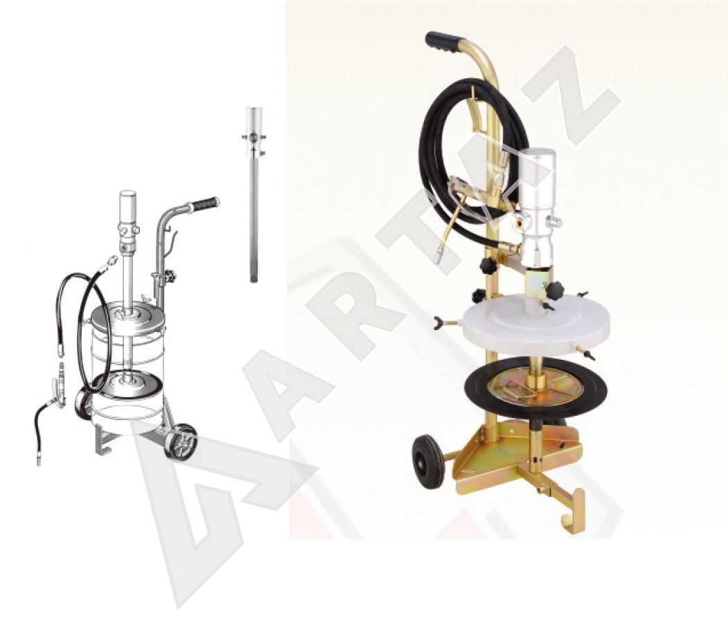 Нагнетатель смазки для бочек 60 л, Техносоюз TS79025 8 бар, пневматический, с коэффициентом сжатия 50:1, на колесах