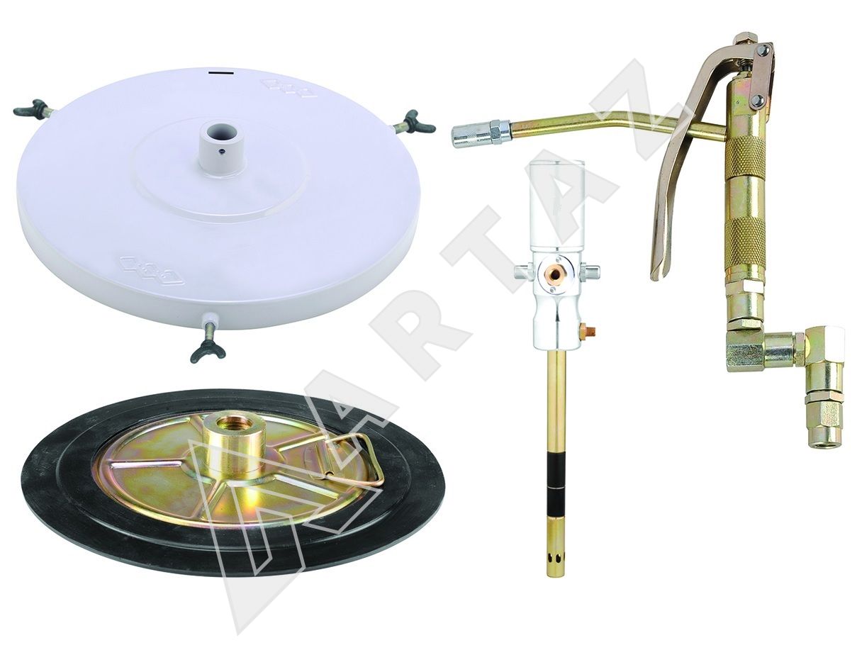 Для удобства транспортировки нагнетатель оборудован металлической ручкой на верхней части корпуса и двумя обрезиненными колесами. В комплект входит маслобензостойкий армированный шланг длиной 4 м. Маслораздаточный пистолет оснащен шарнирным механизмом с вращением на 360 градусов, что упрощает подачу смазки в труднодоступные места.