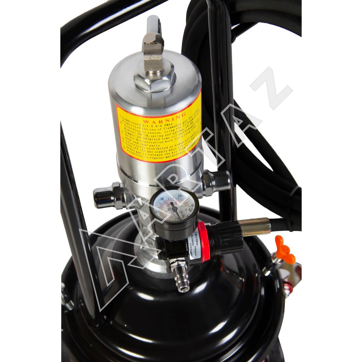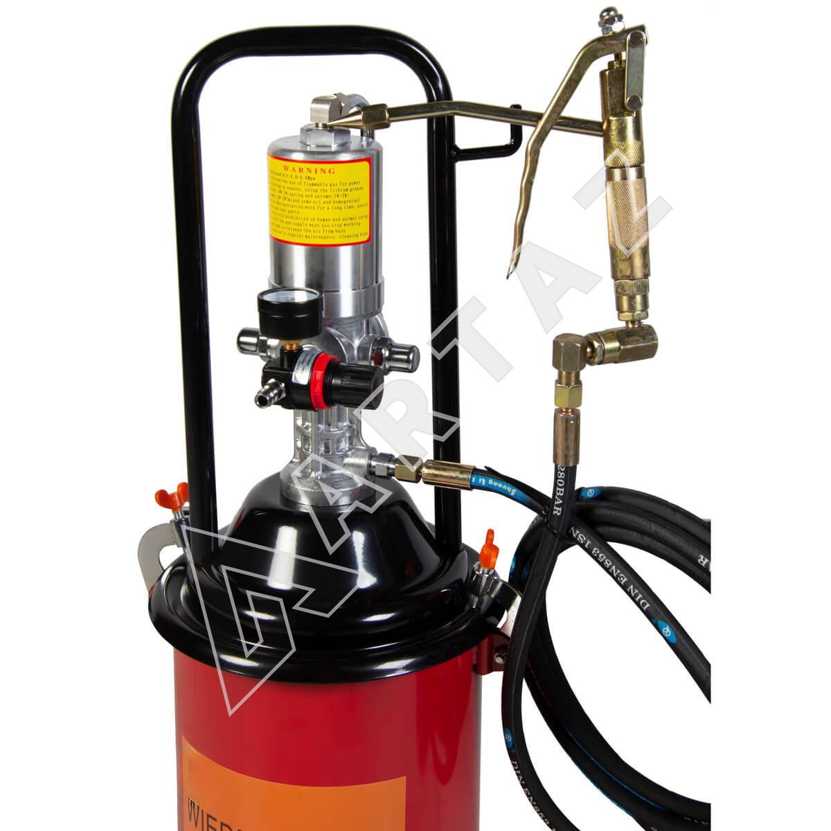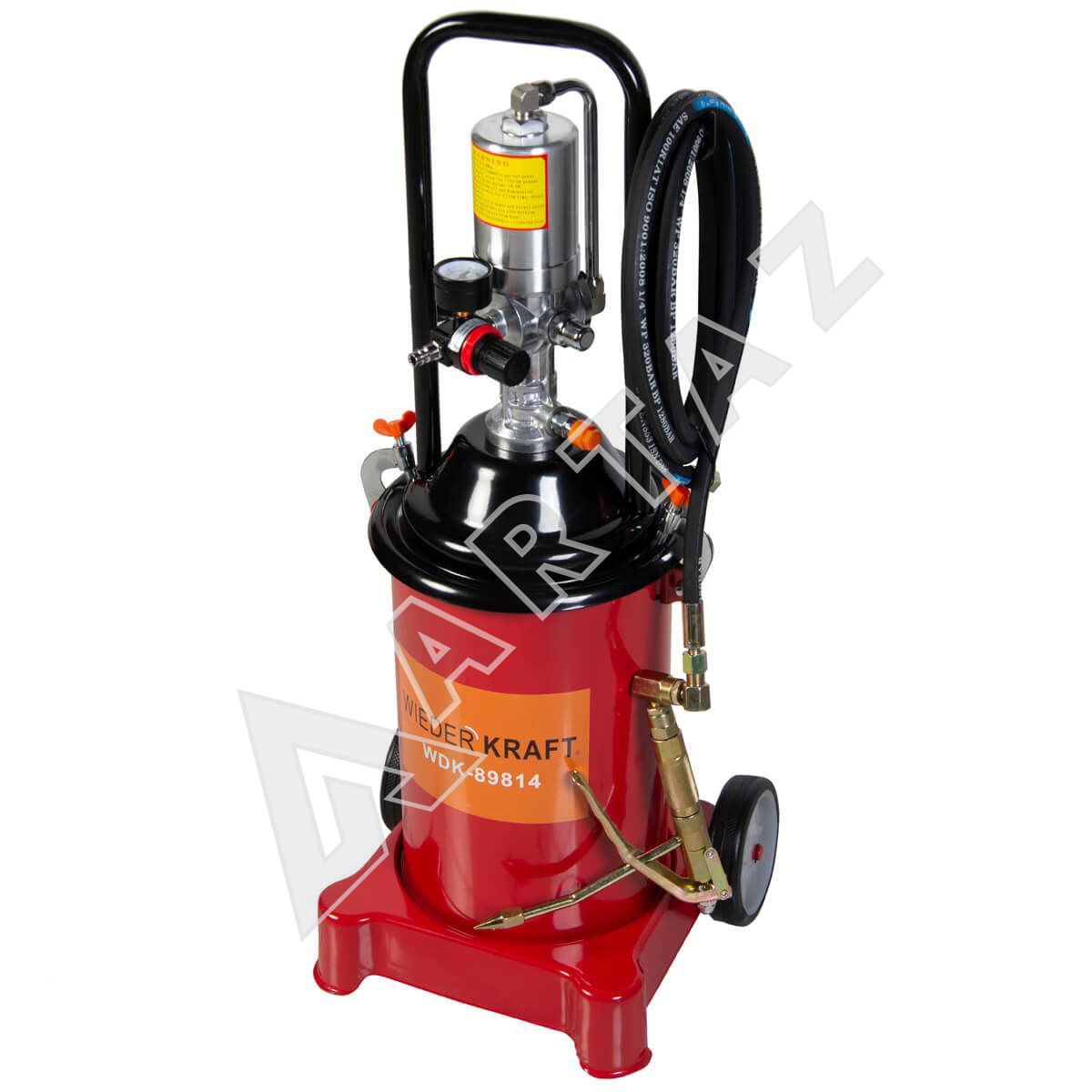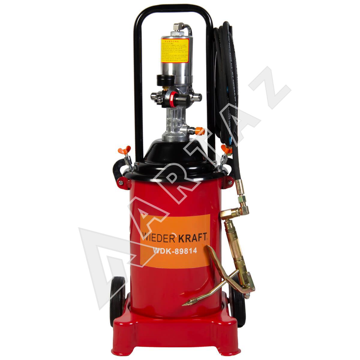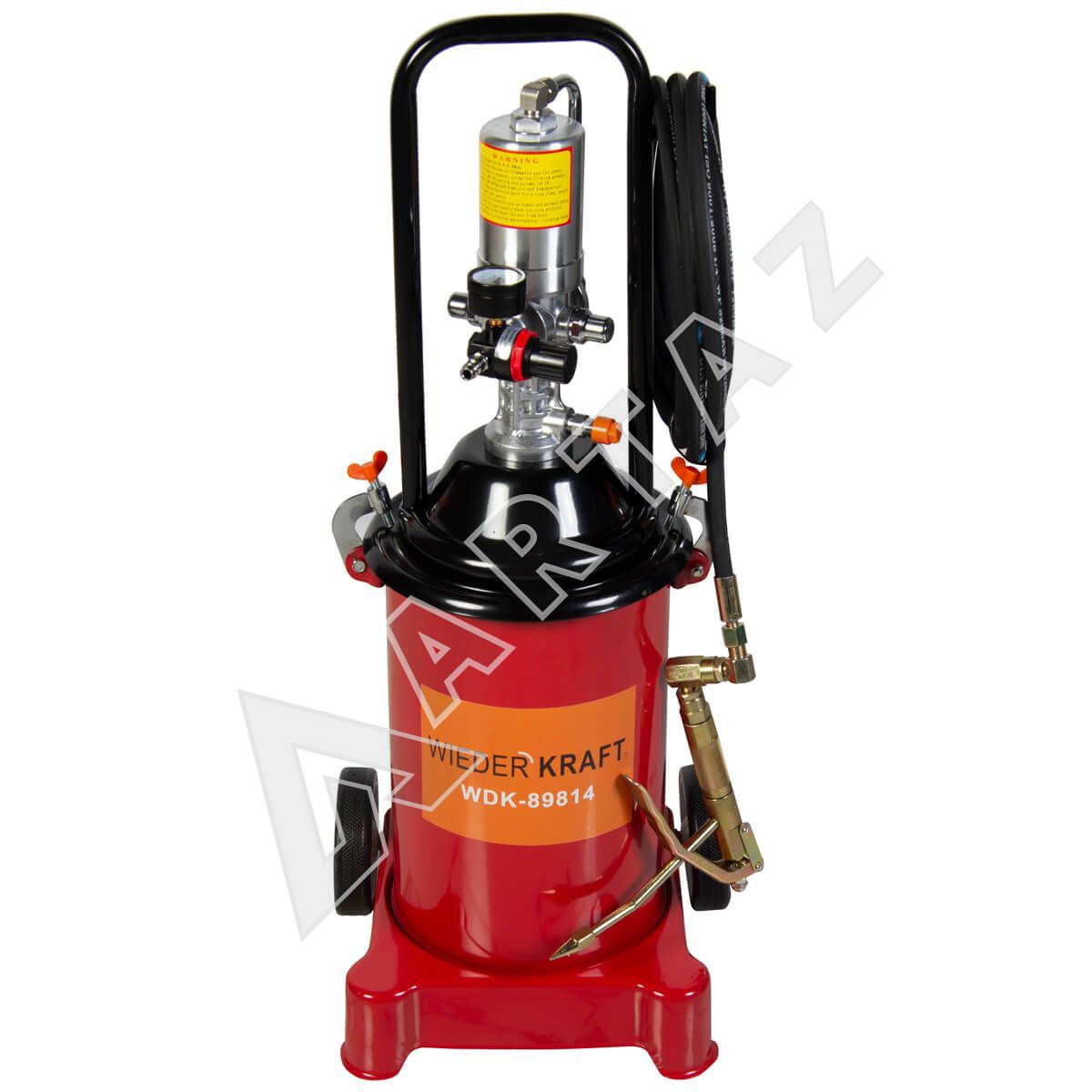 WDK-89814 пневматический нагнетатель смазки с баком 13 л, давление 5-8 бар, производительность 600 г/мин, мобильность на колесах