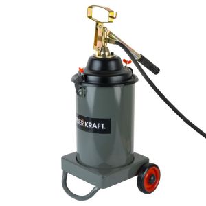 Мобильный нагнетатель WDK-89625 предназначен для нанесения масел и смазок на трущиеся детали автомобилей, тракторов и других машин в автотранспортных предприятиях и на станциях технического обслуживания. Он поддерживает использование как пластичных и консистентных смазок на литиевой или нефтяной основе, так и жидких масел и смазок. Все компоненты устройства изготовлены из материалов, устойчивых к агрессивным химическим веществам. Его мобильная конструкция и небольшой вес обеспечивают удобное обслуживание техники как в зоне ремонта, так и на местах стоянки. Макс. давление смазки 25 МПа. Длина шланга 2500 мм. Объем бака 13 л. Тип привода: ручной.