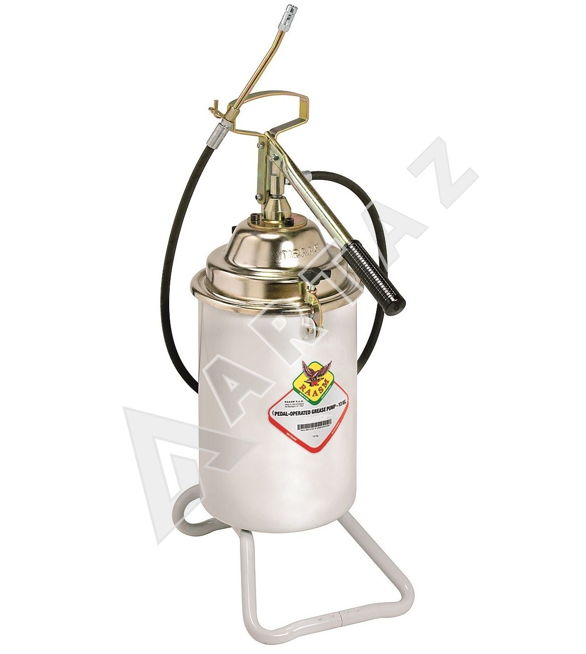 Нагнетатель смазки ручной с емкость. 13 л с армированным раздаточным шлангом 2.5 м, давление до 400 бар RAASM-68012