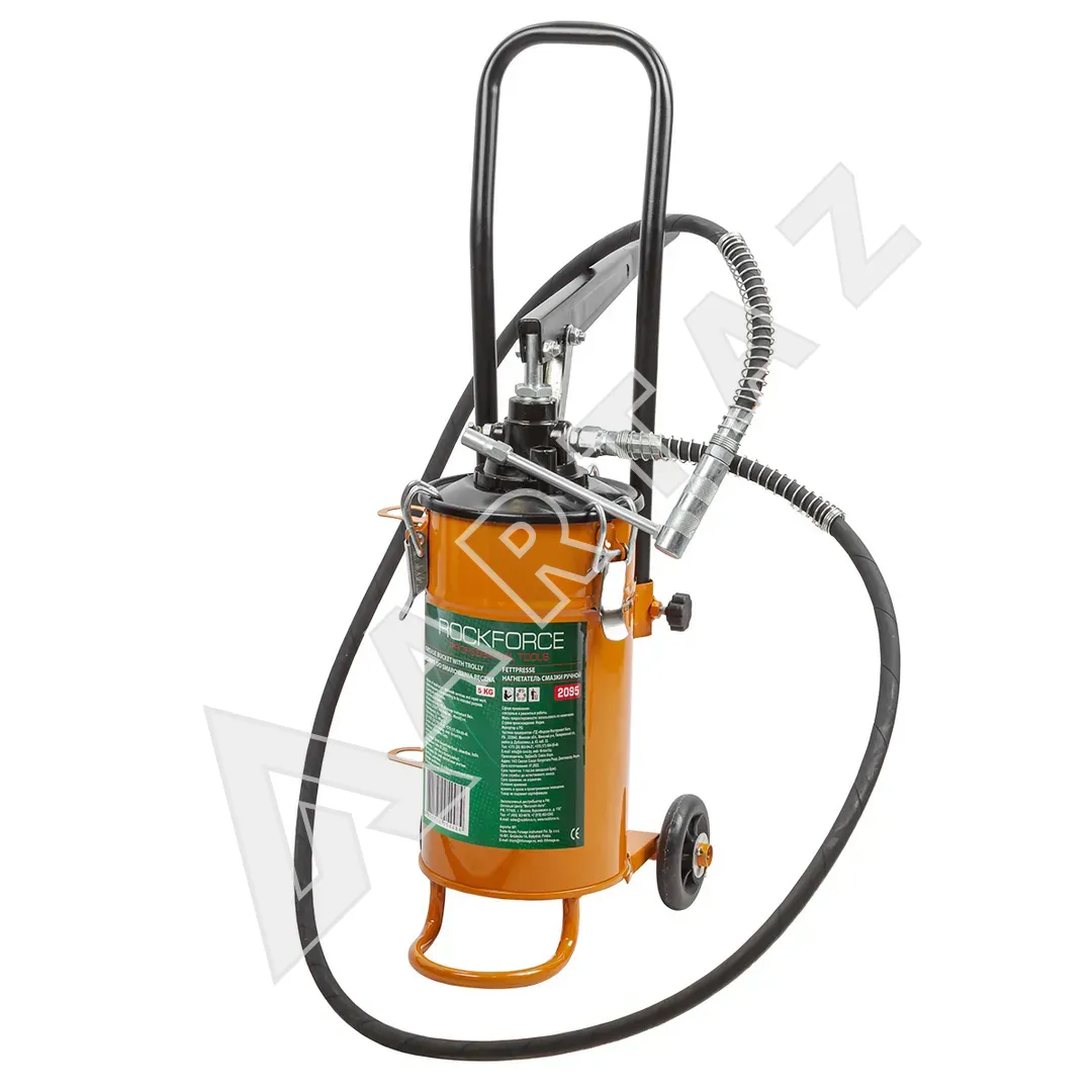 Нагнетатель смазки ручной с емкостью 5 л, выходное давление до 345 бар, производительность 7 г/ход, шланг 2.1 м Rock Force FK-2095