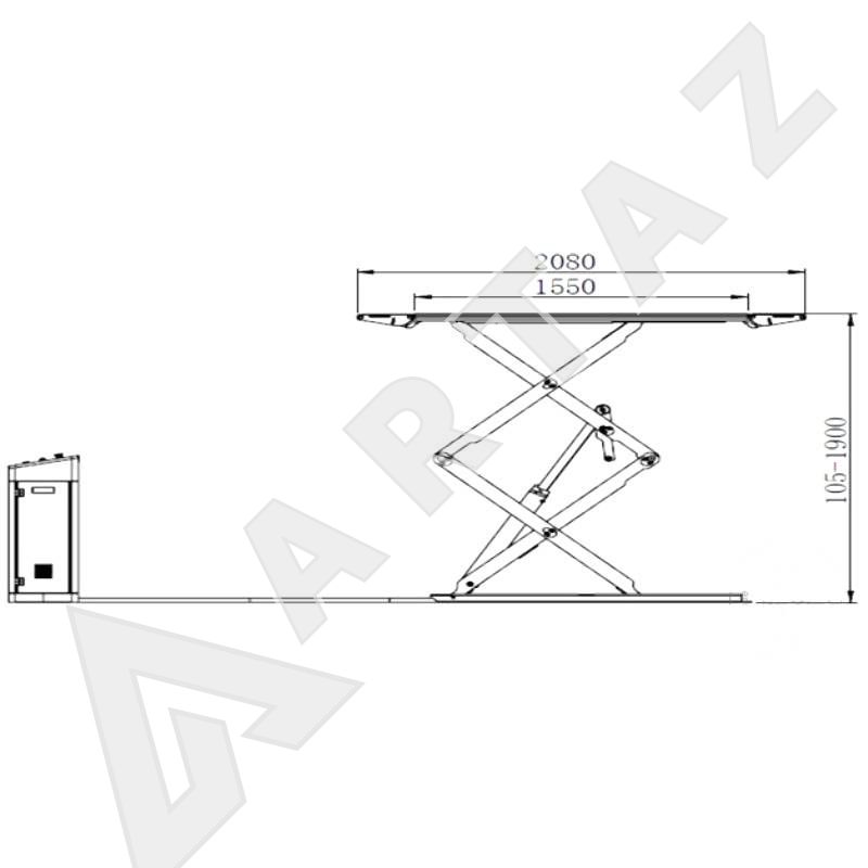 - Максимальная высота подъема 1900 мм обеспечивает свободный доступ к узлам снизу и комфортные условия для слесарных и шиномонтажных операций.
