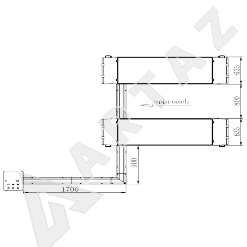 - Компактные габариты платформ (ширина 635 мм, длина 1550 мм без трапов) и фиксированное расстояние между ними 800 мм позволяют рационально использовать площадь мастерской.
