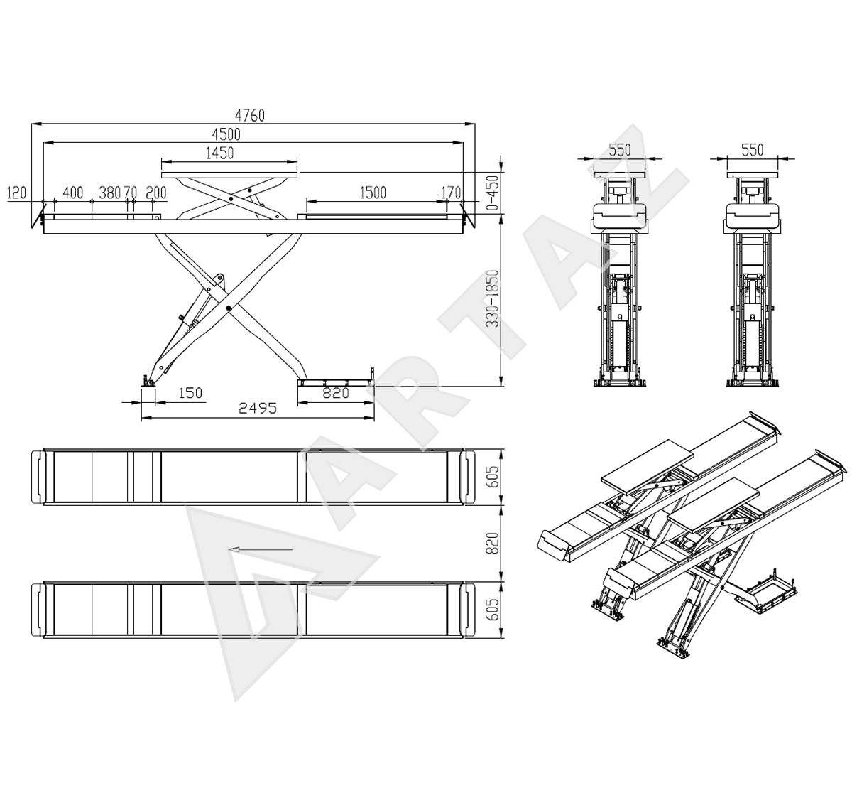 TLT-840 WA ножничный подъемник 4 т для сход-развала и слесарных работ, низкопрофильный электогидравлический подъемник
