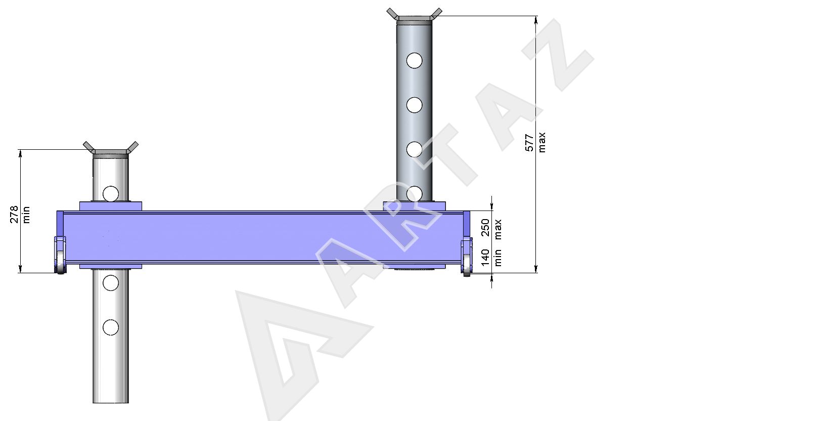 - Минимальное/максимальное расстояние между стойками: 540–760 мм