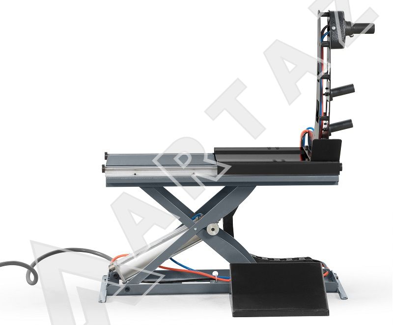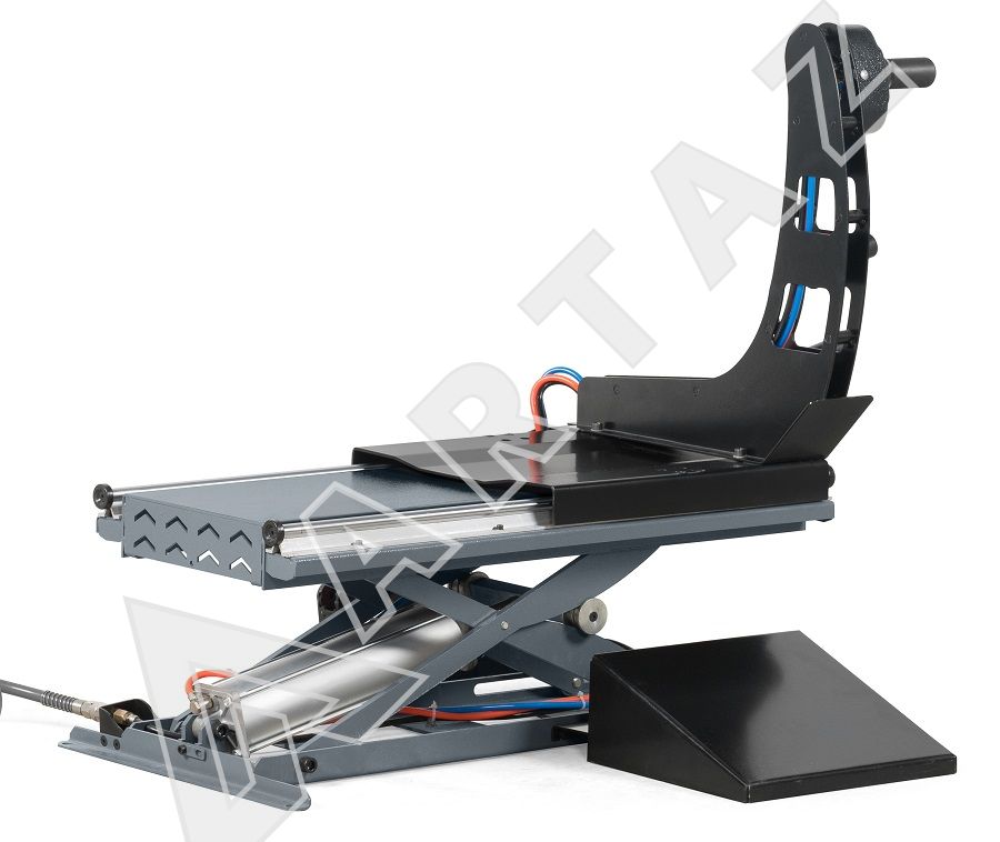 Пневматический привод обеспечивает плавный подъём и долговечность при высоких циклах работы. Управление рукоятью делает операцию быстрой и контролируемой, снижая риск повреждения дисков и шин. Компактные габариты и вес 47 кг упрощают хранение и транспортировку внутри мастерской. Конструкция рассчитана на профессиональное применение в условиях регулярной нагрузки.
