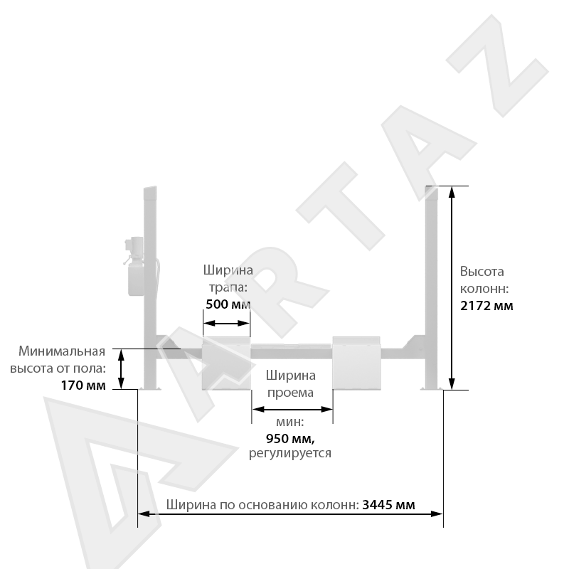 Ширина между колоннами (проезда), мм:3000