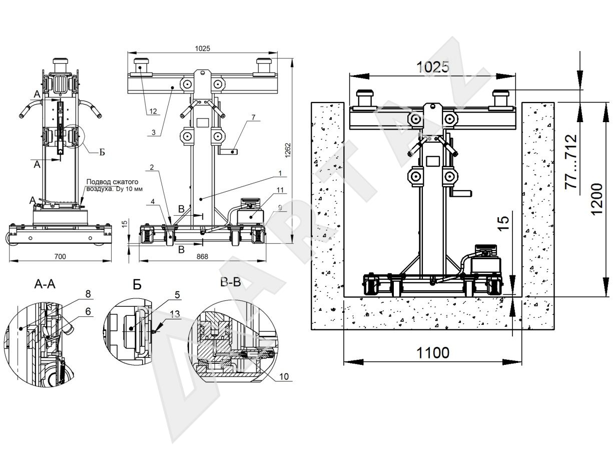 Комплект поставки Канавный Одноштоковый подъемник ПРК-20