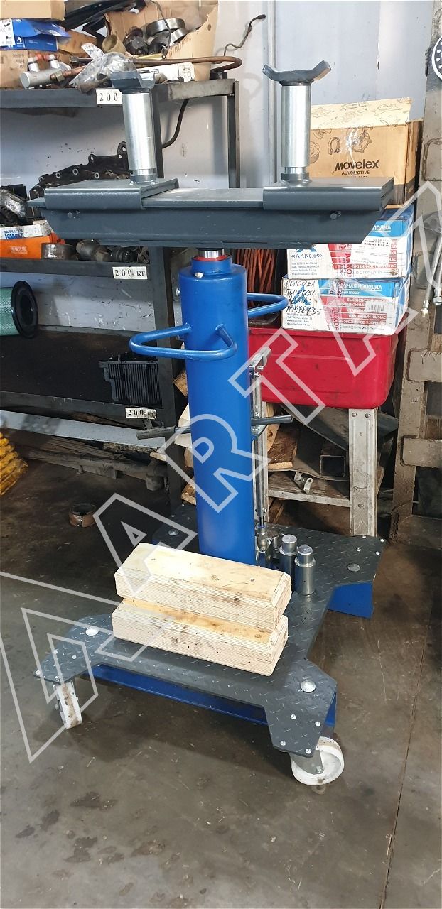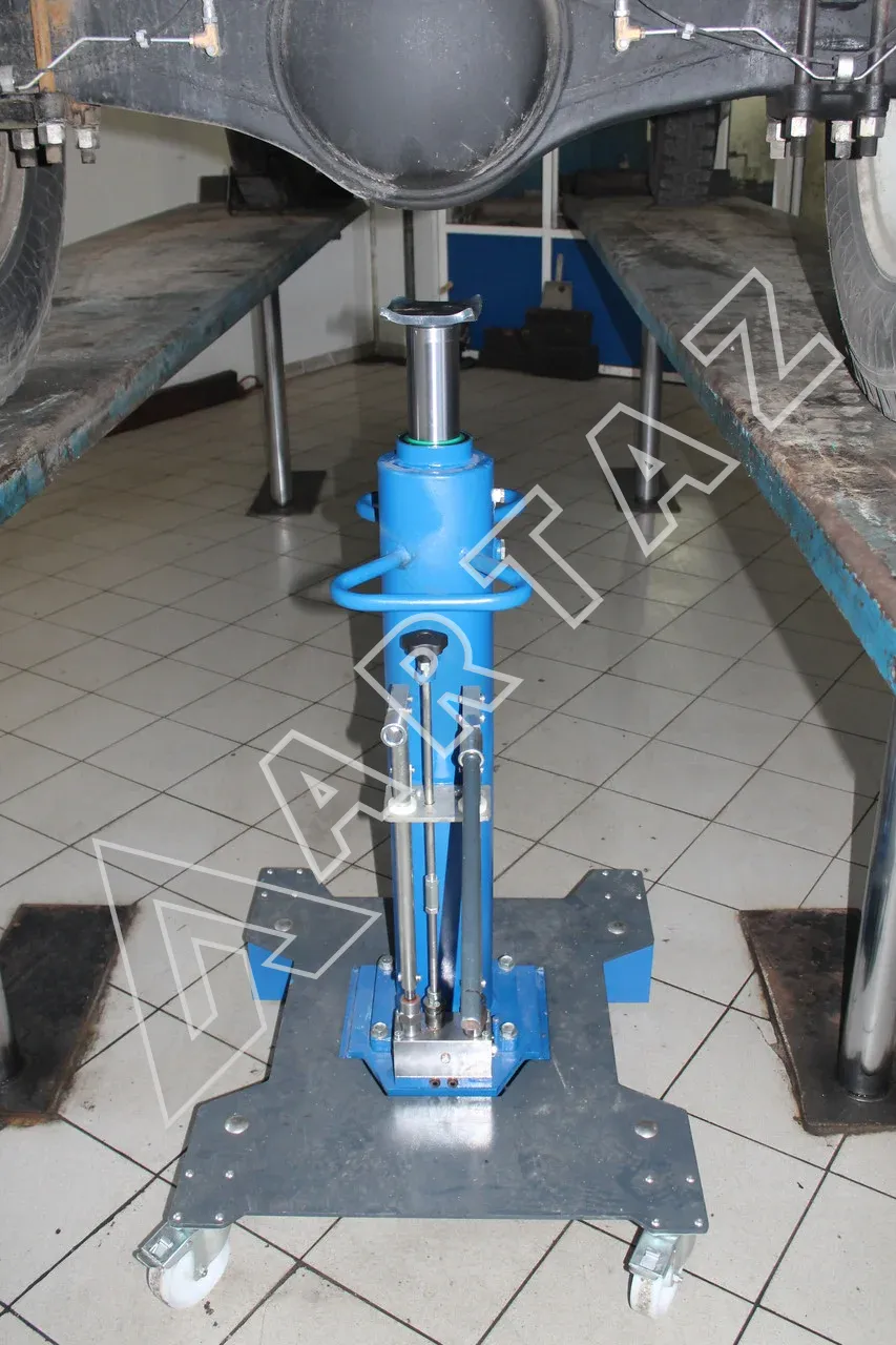 Аппарат решает задачи точечного подхвата, подъема узлов и позиционирования авто при ремонте ходовой части, КПП и других элементов. Подходит для грузовых автомобилей, спецтехники и при необходимости для легковых машин с соответствующими точками подхвата. Компактное основание 750×900 мм упрощает размещение в канаве без дополнительных направляющих, а передвижная конструкция и пружинно-подвешенные ролики позволяют оперативно переставлять подъемник по рабочему месту.