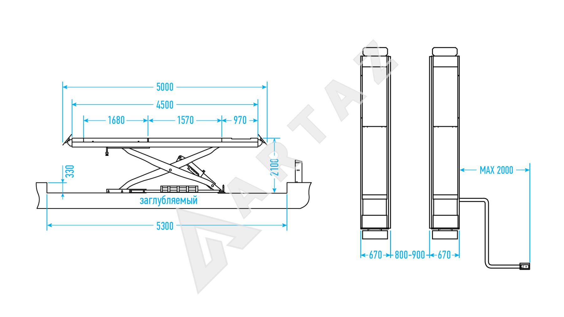 Длина подъемника общая, мм:5000