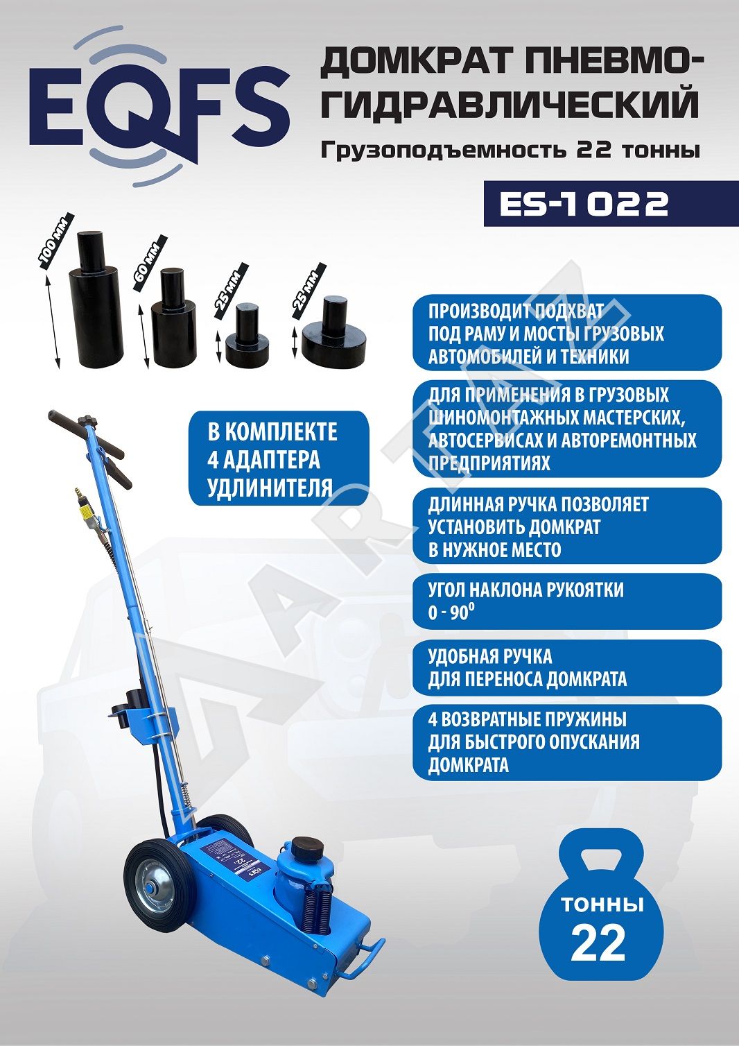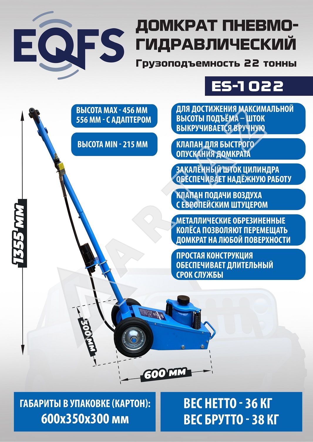 Подкатной пневмогидравлический домкрат 22 т, ход поршня 241 мм, высота подъема 215-456 мм, EQFS ES-1022