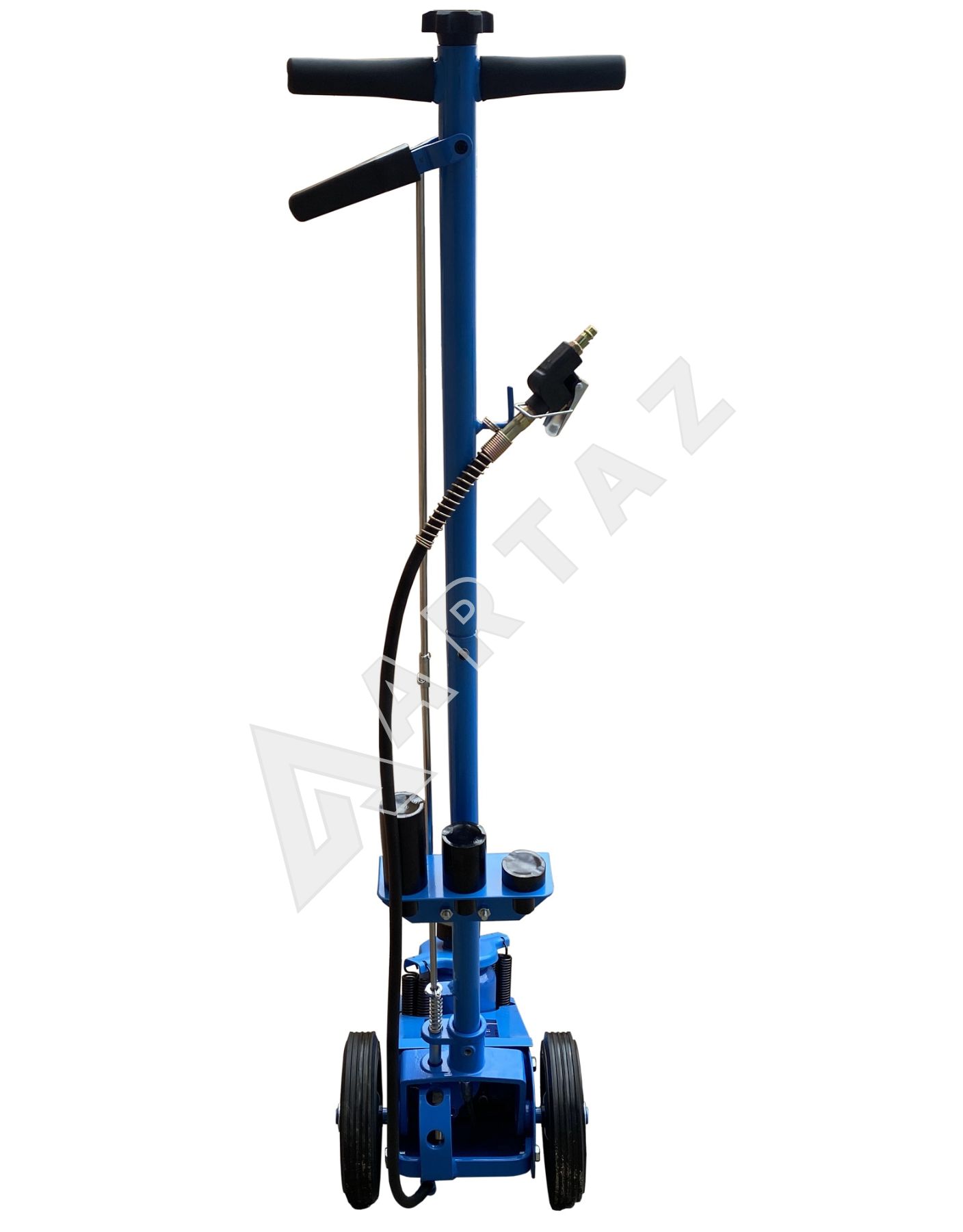 Подкатной пневмогидравлический домкрат грузоподъемностью 22 тонны предназначен для оперативного и безопасного подъема крупногабаритной техники и грузовых автомобилей. Этот инструмент незаменим для автосервисов, СТО, автопарков и предприятий, работающих с тяжелым транспортом.