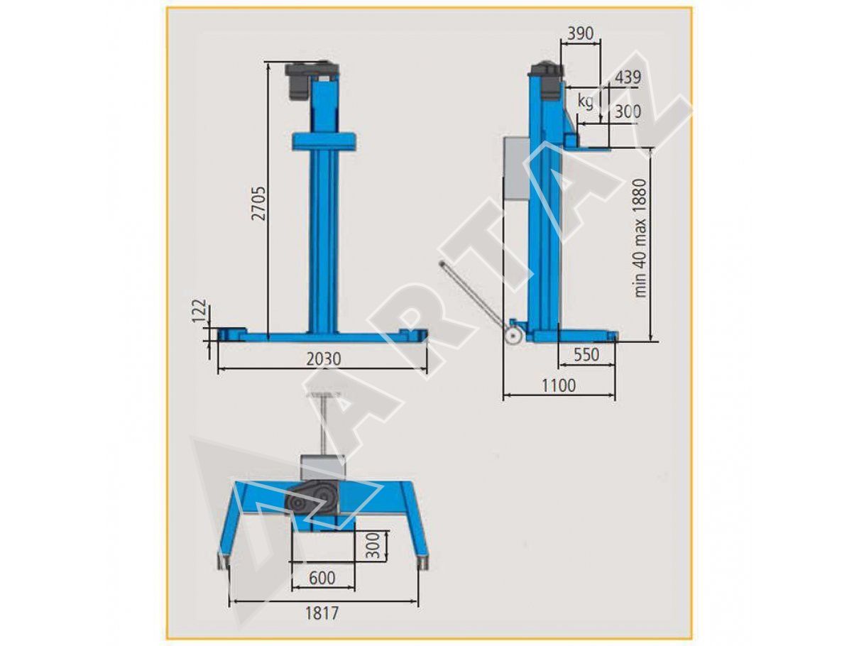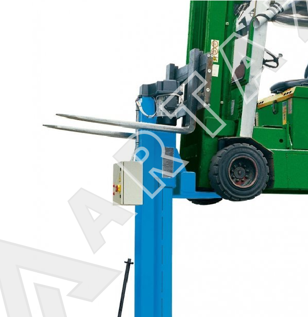 Конструкция подъемника включает две подкатные колонки с мотором мощностью 7 кВт и встроенной системой термозащиты, что предотвращает перегрузки и продлевает срок службы. Питание от встроенных аккумуляторов 24 В позволяет использовать подъемник как в закрытых помещениях, так и на открытом воздухе без необходимости подключения к электросети. Время подъема и опускания занимает всего 135 секунд, что способствует увеличению производительности труда. Колонны синхронизированы с помощью надежной проводной системы, обеспечивающей точную координацию движения и безопасность работы. Высота подъема до 1880 мм и максимальная ширина колес до 1200 мм позволяют работать с большинством видов тяжелой техники, включая вилочные погрузчики и грузовые автомобили.