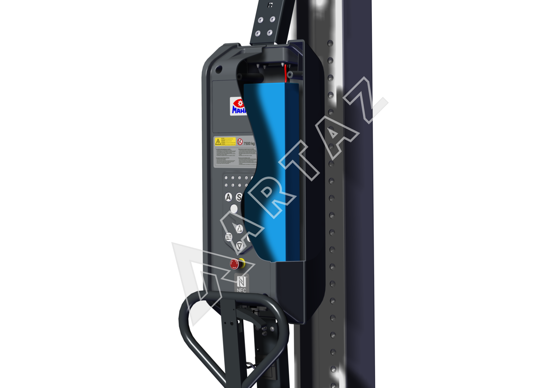 Это четырехстоечное оборудование выделяется электромеханическим приводом и равномерным распределением нагрузки – по 7,5 тонн на каждую колонну. Подъемник работает от встроенных аккумуляторов, которые позволяют выполнить до 35 полных циклов подъема и опускания без подключения к сети, что повышает мобильность и комфорт эксплуатации. Беспроводная синхронизация всех колонн обеспечивает синхронное движение и удобство управления с пультов на каждой опоре, что сокращает время проведения ремонтных работ и снижает вероятность ошибок.