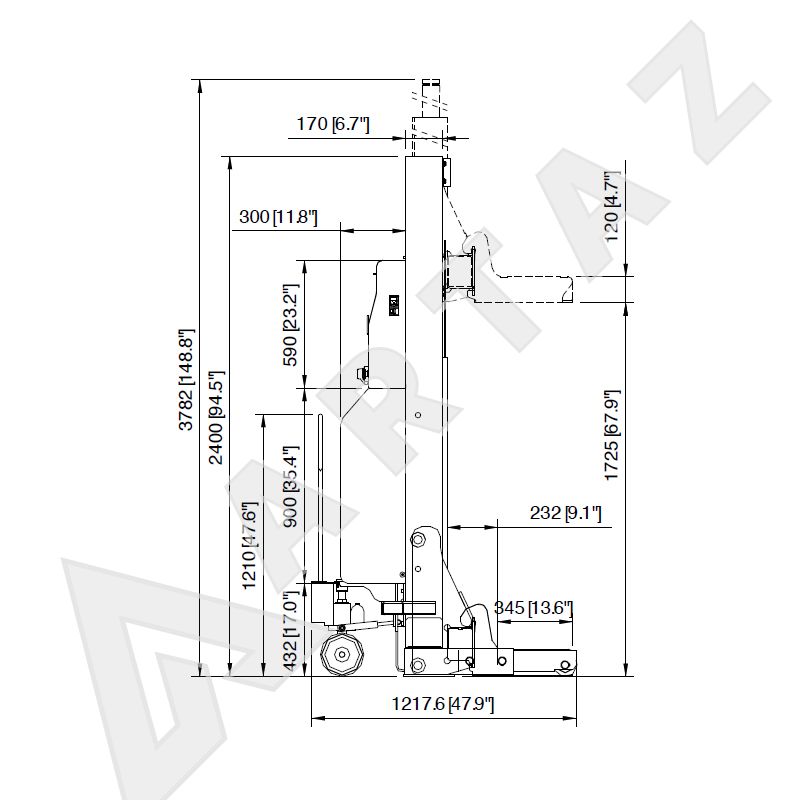 Общая высота подъемника, мм:3782