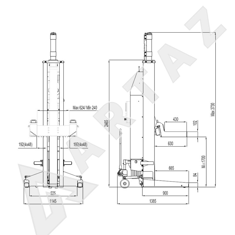 Общая высота подъемника, мм:3730