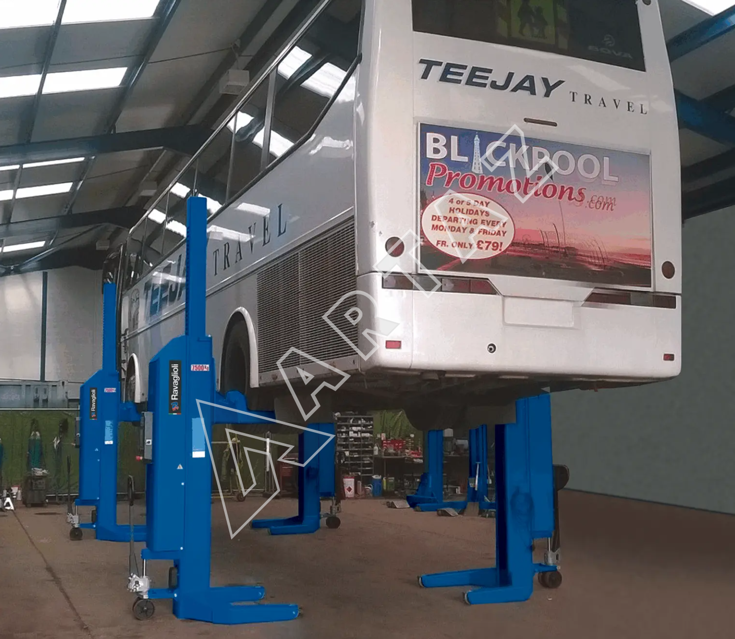 Подкатной подъемник для грузовых автомобилей электрогидравлический 44т Ravaglioli RAV305H.8WS, 8 колонн