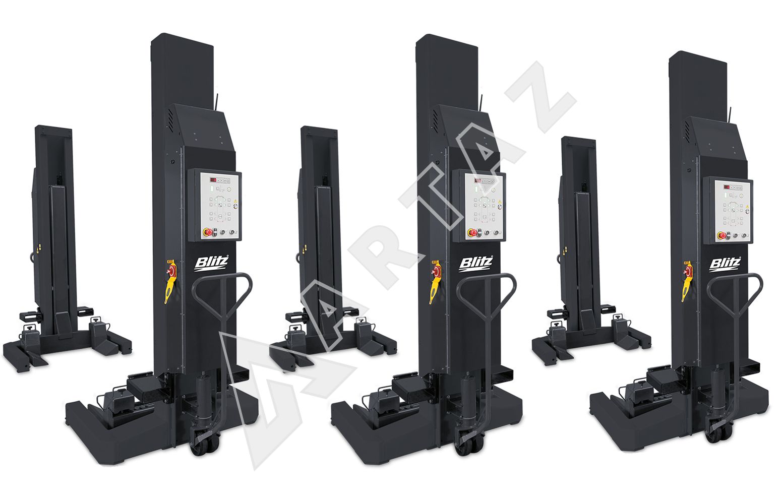 Blitz HydroLift S2 6-8.2 48т электрогидравлический подкатной подъемник для грузовиков с беспроводной синхронизацией и аккумуляторным питанием на 6 колонн