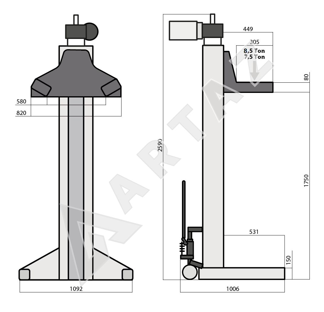 - Четыре подвижные колонны по 7,5 тонн каждая