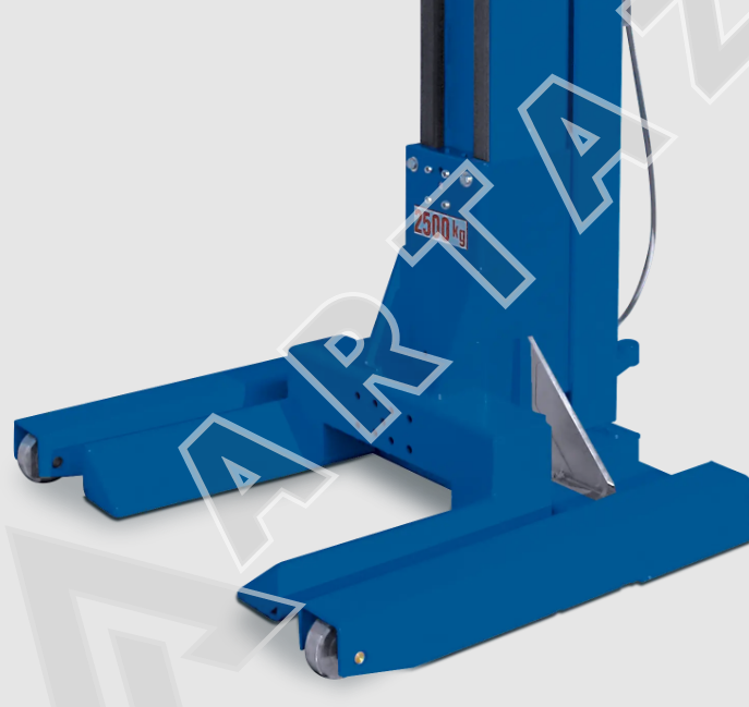 Данная модель оснащена четырьмя электромеханическими колоннами, каждая из которых поднимает до 2,5 тонн, что позволяет равномерно распределять нагрузку и предотвращать перекос. Механизм подъема за колеса сочетает в себе удобство и минимальный риск повреждений. Подъемник работает от трехфазного питания 380 В с мощностью 14 кВт, что обеспечивает стабильное функционирование. Максимальная высота подъема 1800 мм предоставляет комфортный доступ к днищу автомобиля. Диапазон колес от 550 до 780 мм позволяет обслуживать большинство легковых моделей. Управление осуществляется с пульта, размещенного на одной из колонн, с функцией аварийной блокировки для дополнительной безопасности. Благодаря проводной синхронизации все четыре колонны работают согласованно, минимизируя возможные риски сдвига и повышая точность подъема.