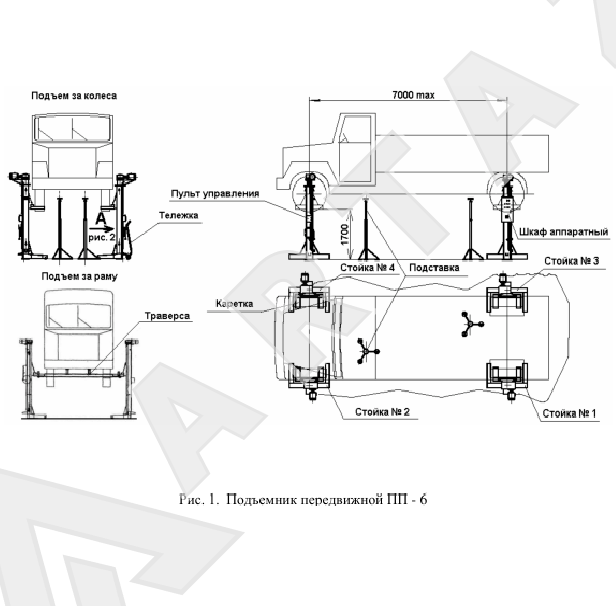 ПП-6 электромеханический подкатной подъемник 6 тонн с 4 проводнми колоннами для легкого коммерческого транспорта