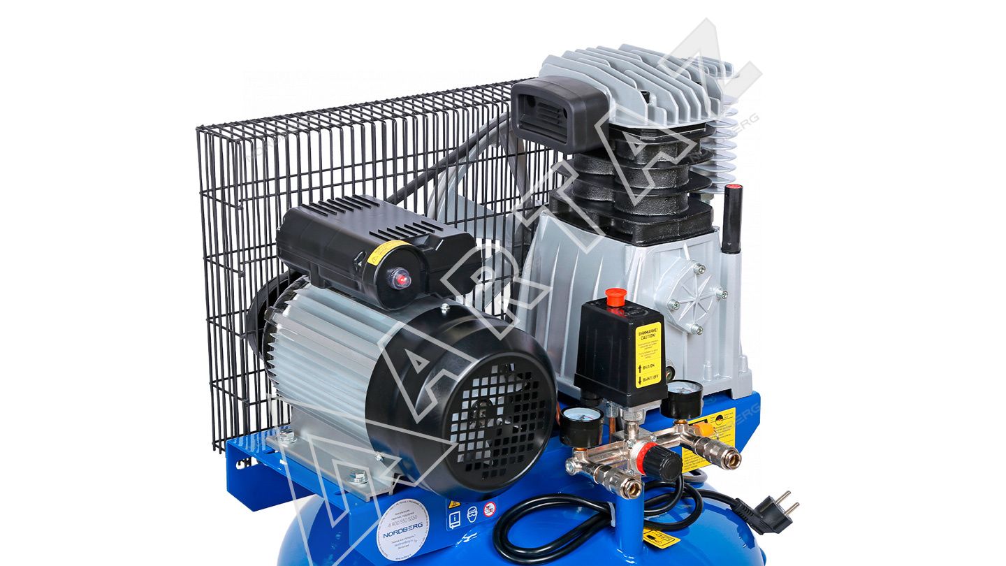- Ременной привод гарантирует долговечность и плавную работу компрессора