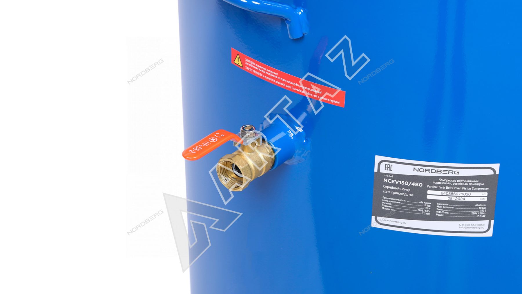 Поршневой компрессор 150 л, 446 л/м, 220В, 3 кВт, ременной, масляный вертикальный Nordberg NCEV150/480