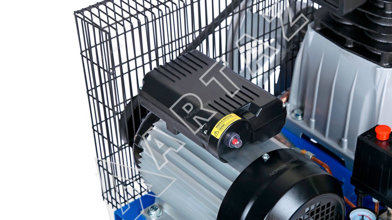 Особенности:Литые детали цилиндра выполнены из чугуна, что позволяет увеличить время непрерывной работы компрессора, КПД и срок службы , Защита от перегрузок, срабатывающая в случаях выхода напряжения питания на электродвигателе за рамки допустимого или при его перегреве