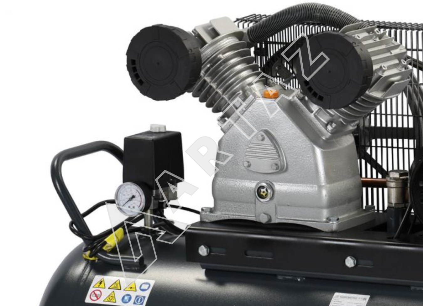 Компрессор имеет ременной привод, который обеспечивает высокую надежность и долговечность работы. Благодаря масляному исполнению, компрессор работает плавно и надежно. Он имеет передвижную конструкцию для удобства транспортировки для работ по месту. Гарантия производителя на устройство составляет 12 месяцев. Страна производитель - Китай