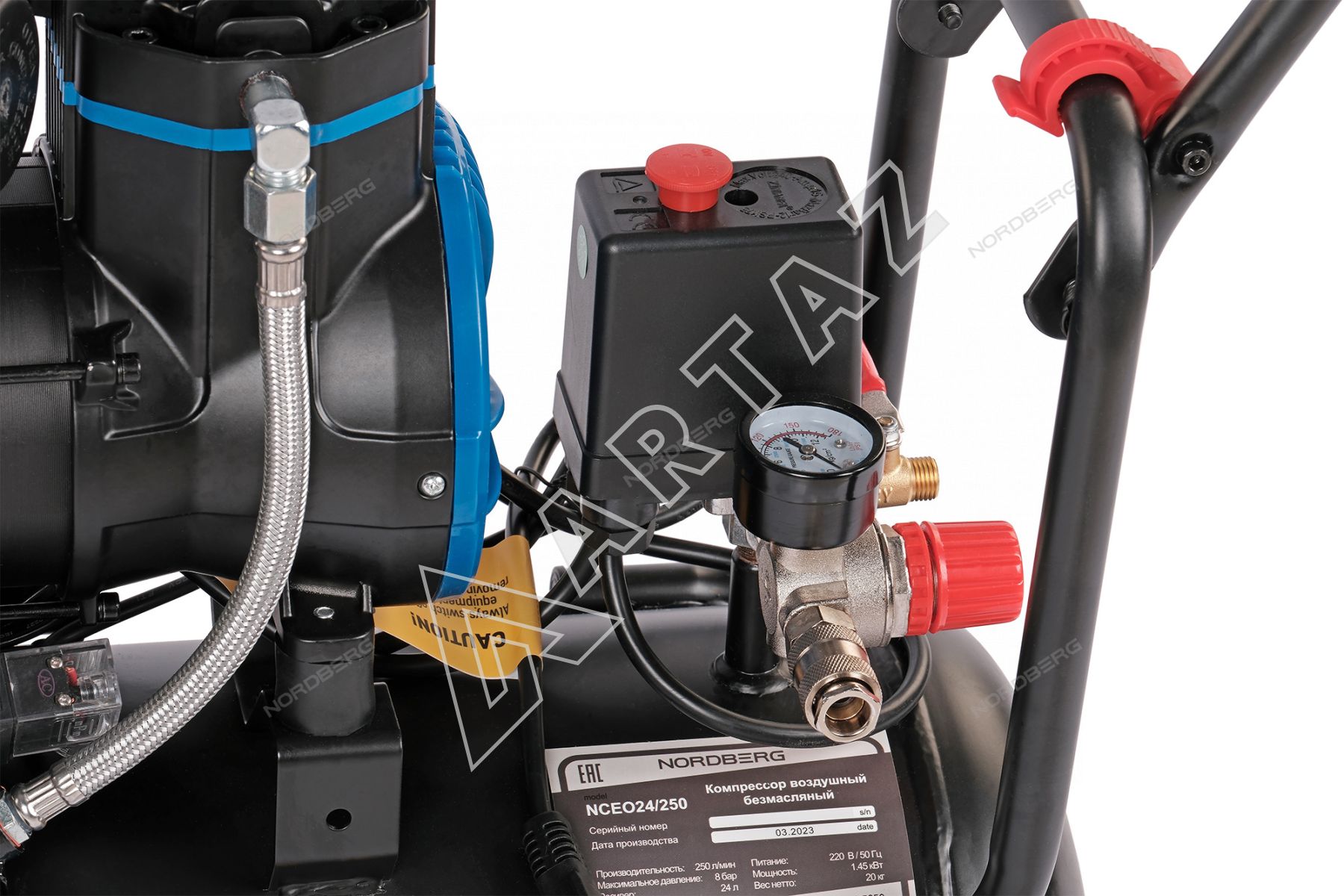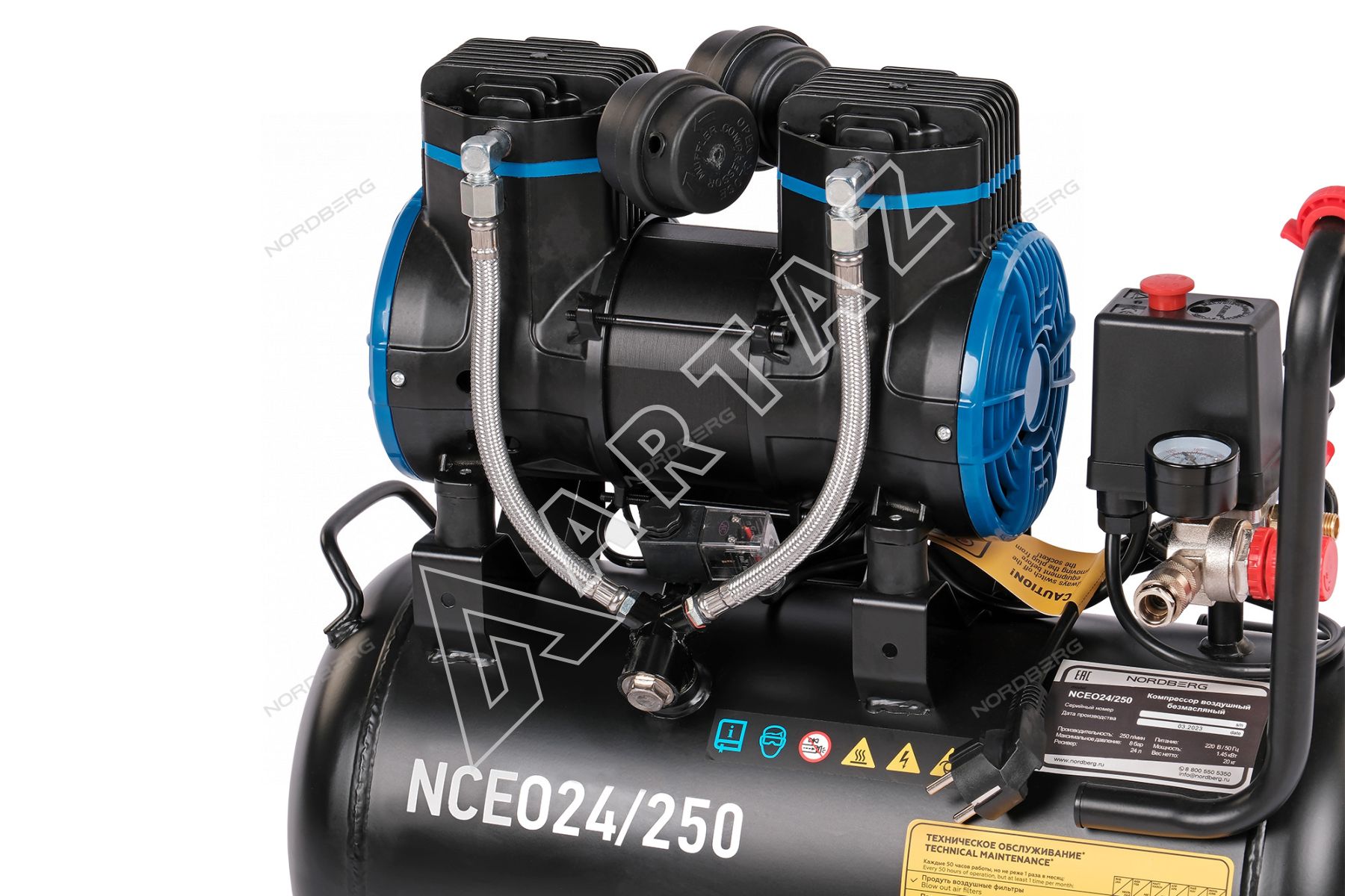 Поршневой компрессор 24 л, 250 л/м, 220В, 1.45 кВт, коаксиальный, безмасляный Nordberg NCEO24/250