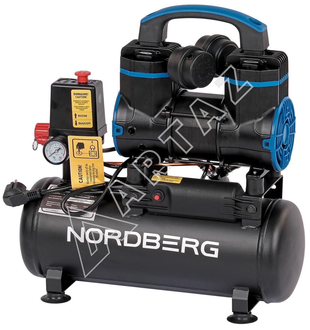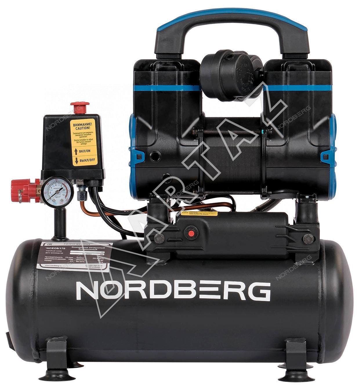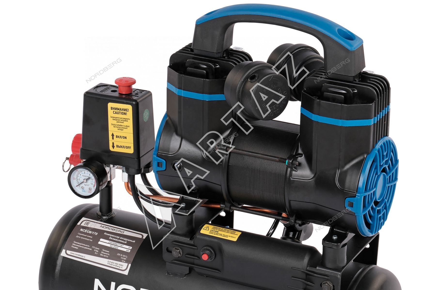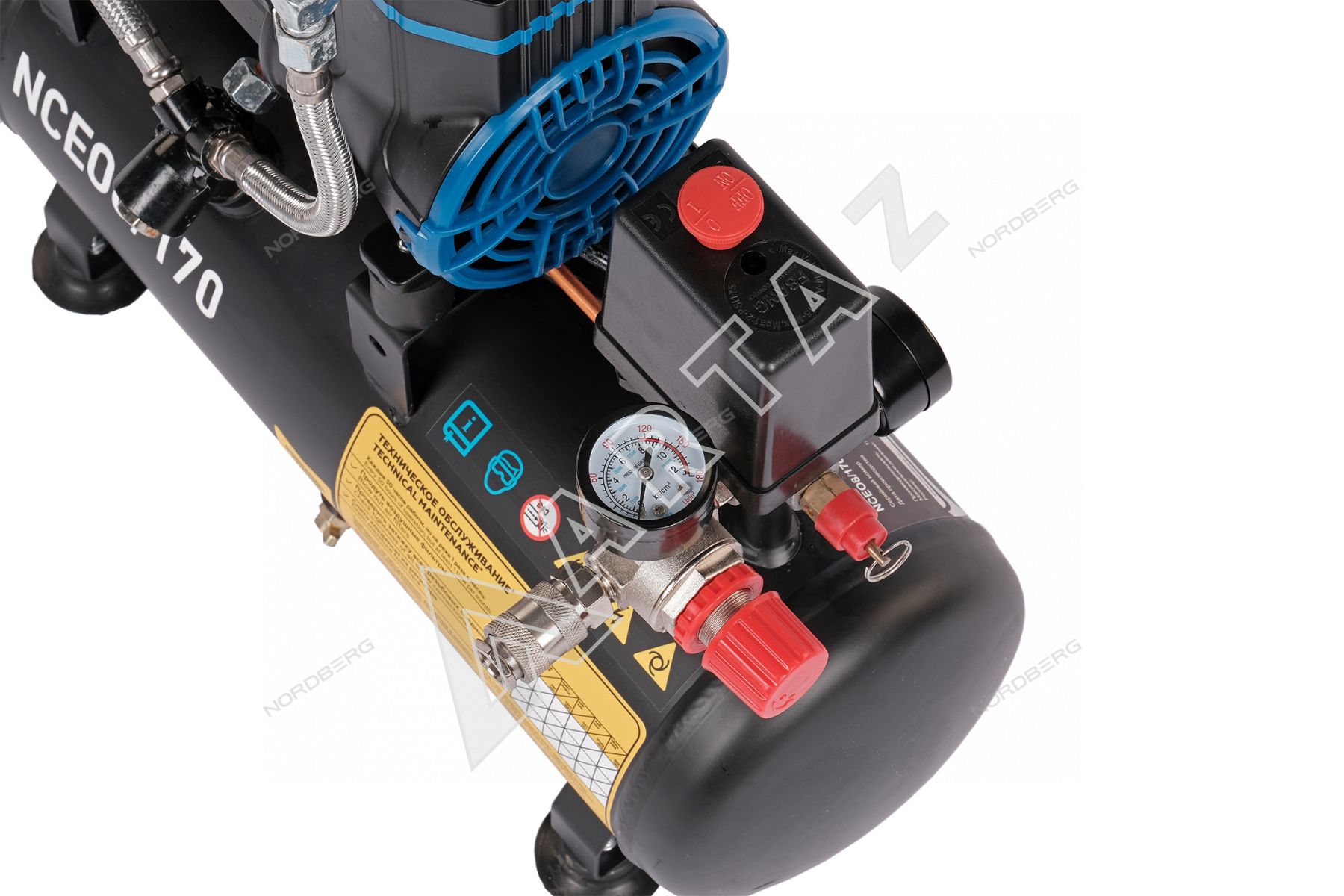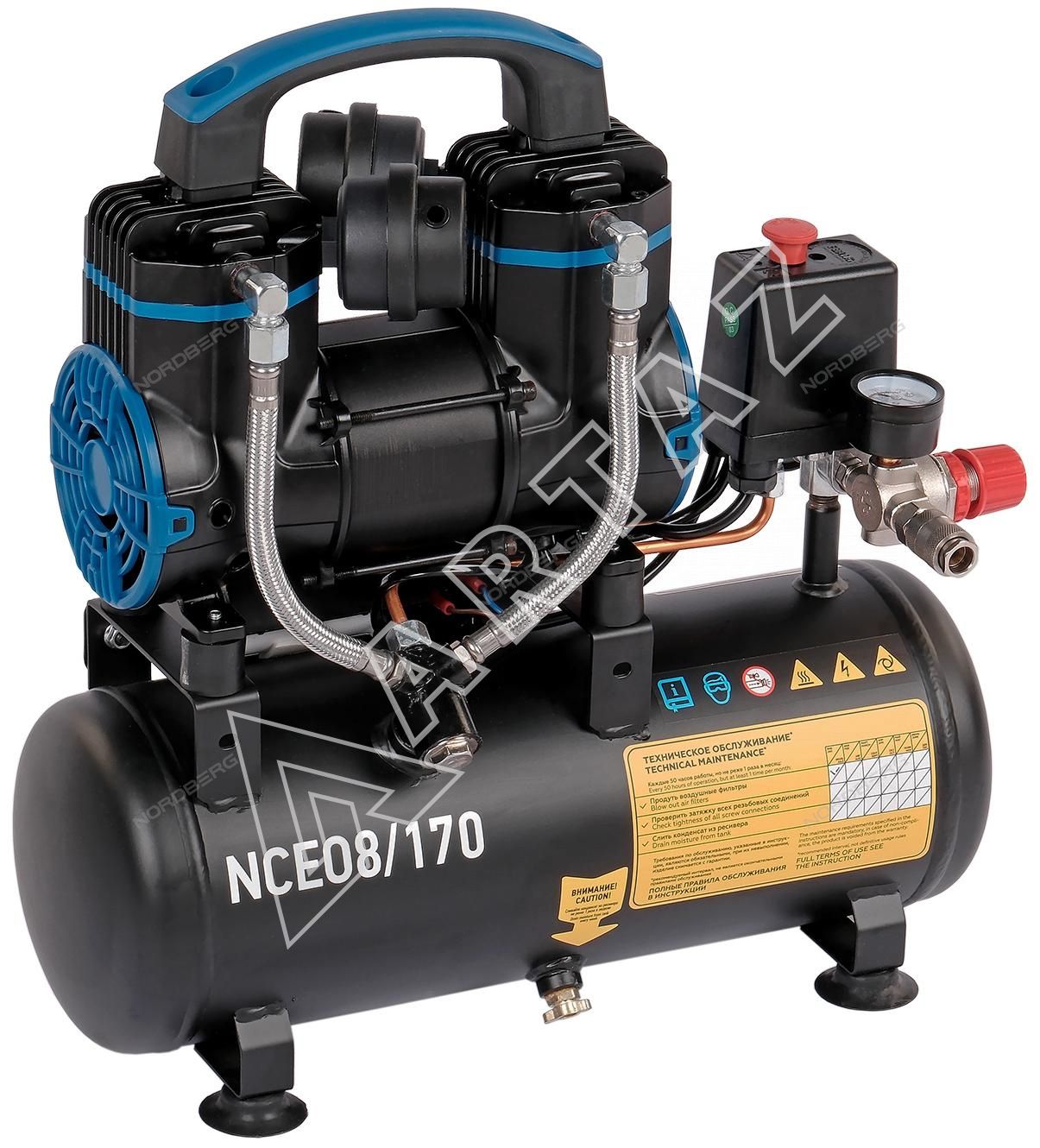 Поршневой компрессор 8 л, 170 л/м, 220В, 0.9 кВт, коаксиальный, безмасляный Nordberg NCEO8/170