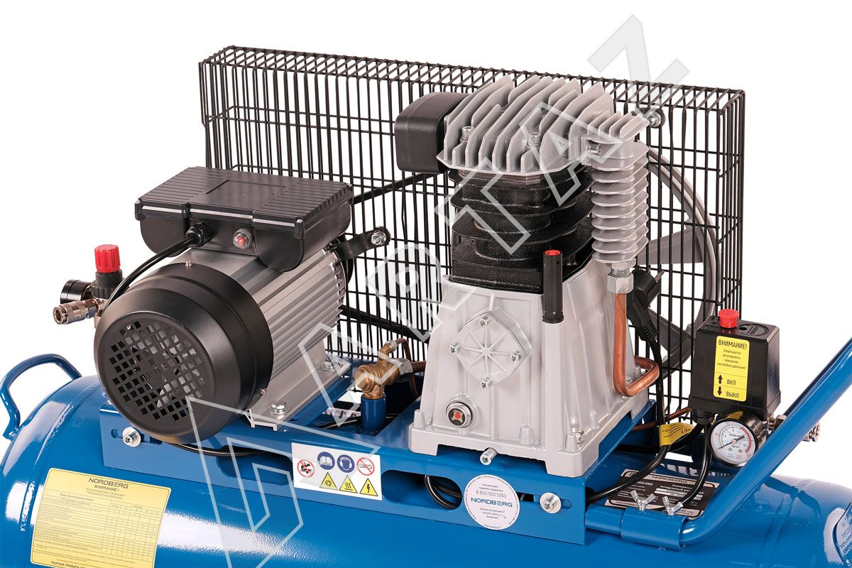 Поршневой компрессор Nordberg NCE100/480 220В, 446 л/мин, ресивер 100л, с ременной передачей