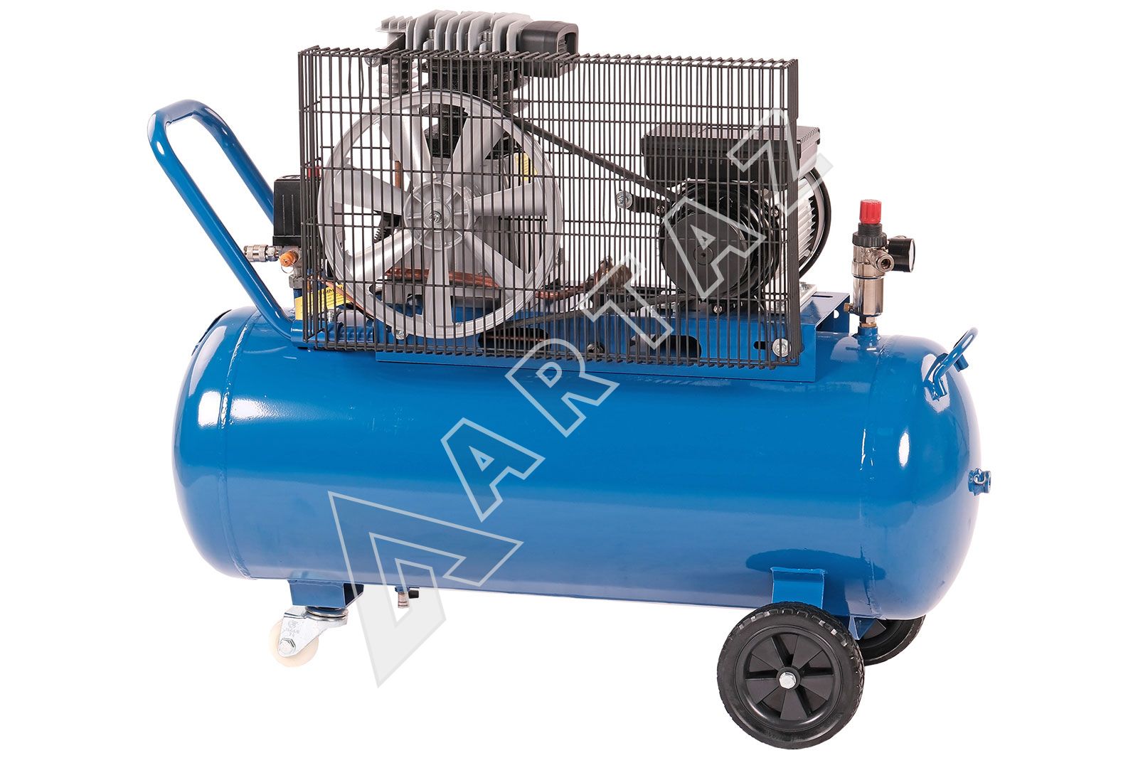 - Объем ресивера 100 литров обеспечивает стабильную подачу воздуха без скачков давления