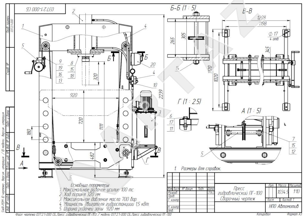 Преимущества ПГ100 Пресс электрогидравлический напольный