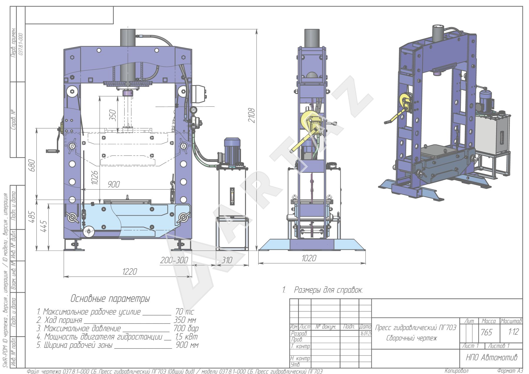 Особенности пресса гидравлического ARTAZ ПГ70 напольного, с электрическим приводом