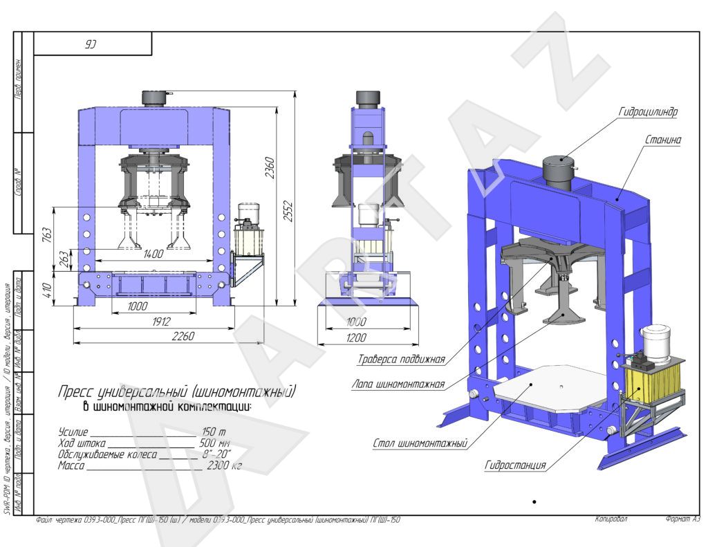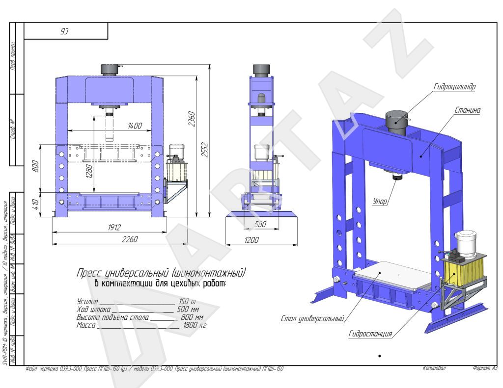 Пресс электрогидравлический 150т ARTAZ ПГШ150, напольный, усилие 150 тонн