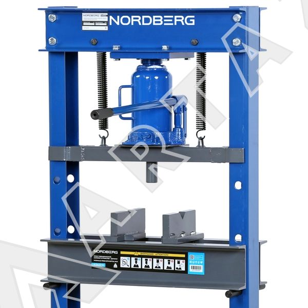 Nordberg N3611JL оснащён мощным бутылочным домкратом с ручным приводом, который обеспечивает плавную и контролируемую подачу давления. Регулируемая высота рабочего стола с фиксацией позволяет адаптировать рабочую зону под различные заготовки. Конструкция с пружинами возврата обеспечивает быстрое восстановление штока в исходное положение, а разборная рама облегчает транспортировку и хранение.