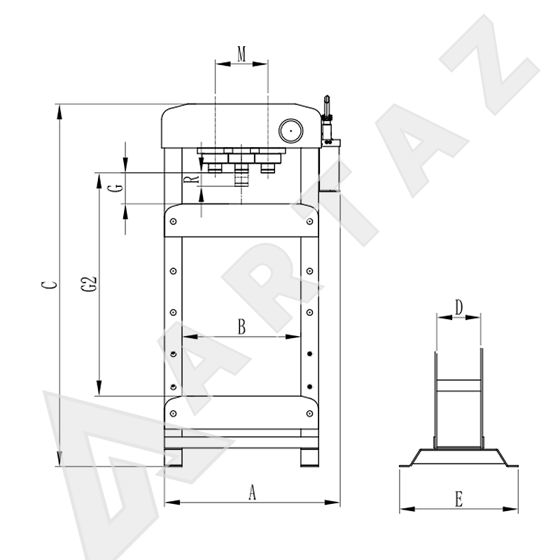 Опции: iАвтоматический возврат поршня при помощи пружины , Встроенный клапан для защиты от перегрузок , Регулируемый по высоте рабочий стол , Механическая лебедка для легкого и быстрого перемещения стола , Лоток для инструмента и запасных частей