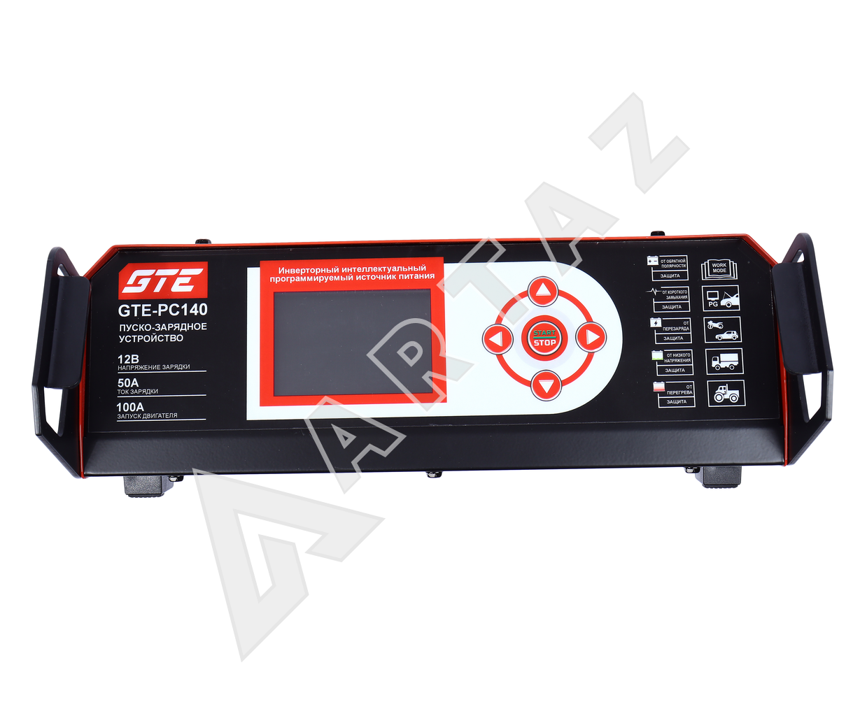 Модель GTE-PC140 обеспечивает максимальный ток зарядки до 50 А и минимальный ток зарядки от 10 А. Инверторная технология гарантирует стабильную и эффективную работу как при зарядке, так и при пуске двигателя. Устройство оснащено цифровым вольтметром и предлагает 6 ступеней регулировки тока зарядки, что позволяет гибко адаптировать процесс под разные типы аккумуляторов и условия эксплуатации. Режим Boost ускоряет запуск двигателя даже при низком заряде аккумулятора. Защита от короткого замыкания повышает безопасность работы.