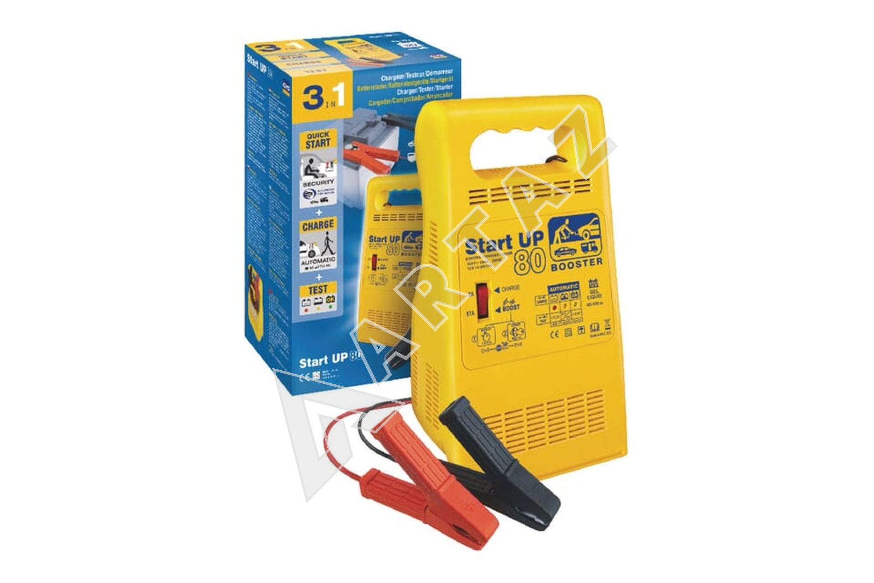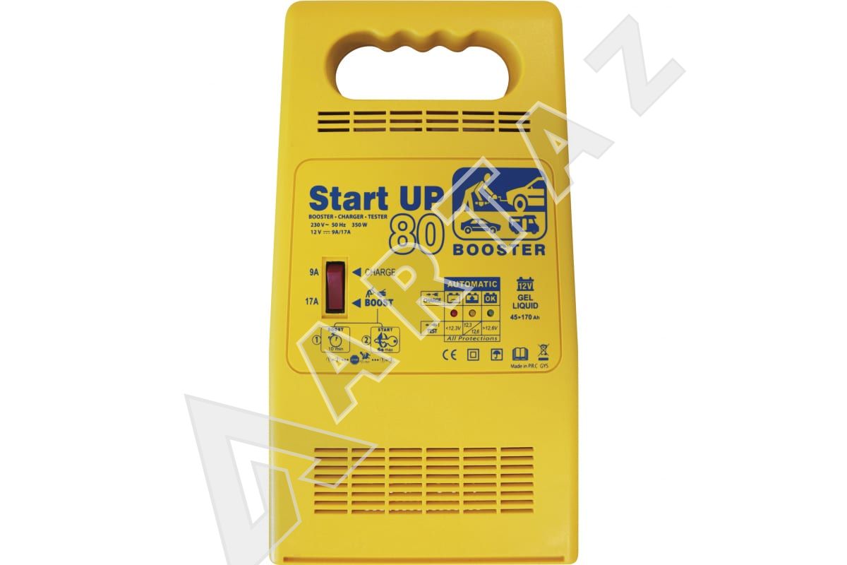 Модель START UP 80 оснащена автоматической системой управления, обеспечивающей максимальную защиту от короткого замыкания, переполюсовки и перенапряжения. Устройство позволяет работать с аккумуляторами емкостью от 45 до 170 Ач благодаря двум ступеням зарядки — быстрой и медленной. Пусковой ток в 50 А гарантирует надежный запуск двигателя мотоциклов и легковых автомобилей. Встроенный режим Boost позволяет оперативно увеличить силу тока при необходимости. Благодаря своим компактным размерам и весу 4,4 кг устройство удобно переносить и использовать в любых условиях СТО.