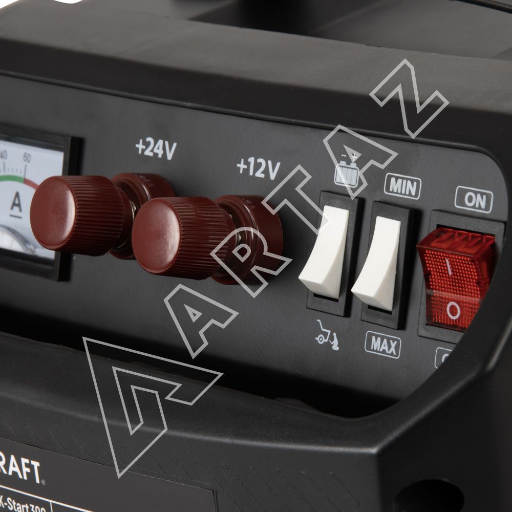 Wiederkraft WDK-Start300 – трансформаторное пуско-зарядное устройство, обеспечивающее пусковой ток до 300 А. Модель поддерживает напряжение аккумуляторов 12 и 24 В с настройками двух ступеней тока зарядки, максимальное значение которого достигает 50 А. Наличие режима Boost позволяет быстро запустить даже сильно разряженные аккумуляторы. Интегрированные системы защиты от короткого замыкания, перегрева и неправильной полярности гарантируют безопасность и надежность эксплуатации в профессиональных условиях.