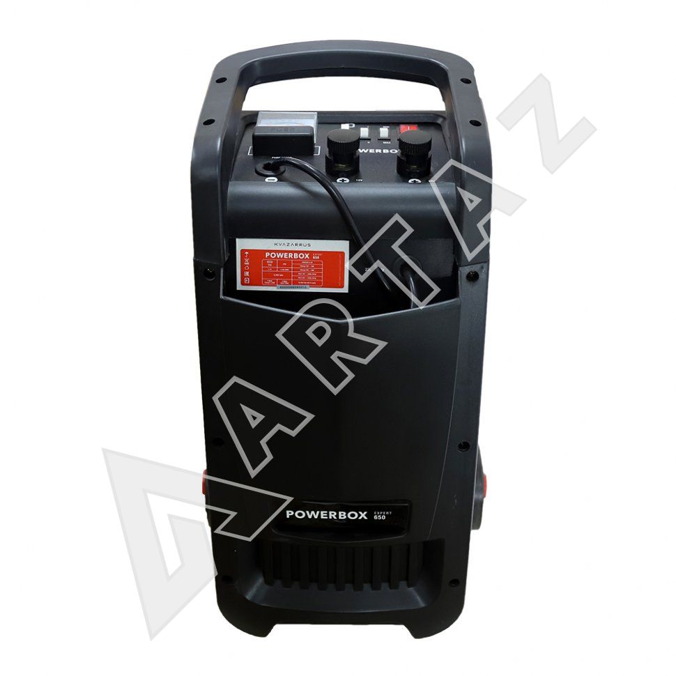 Модель PowerBox 650 оборудована мощным трансформатором, обеспечивающим пусковой ток до 540 А. Регулировка тока зарядки осуществляется в четырёх ступенях, начиная от 10 А и достигая до 60 А, что позволяет адаптировать заряд к различным типам аккумуляторов. Аппарат поддерживает напряжения 12 и 24 В, имеет встроенный режим Boost для ускоренного запуска. Надежные системы защиты охраняют устройство от короткого замыкания, перегрузок и неправильной полярности, обеспечивая длительный срок службы и безопасность эксплуатации.