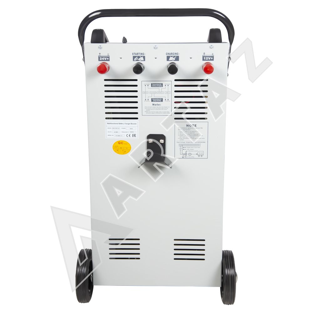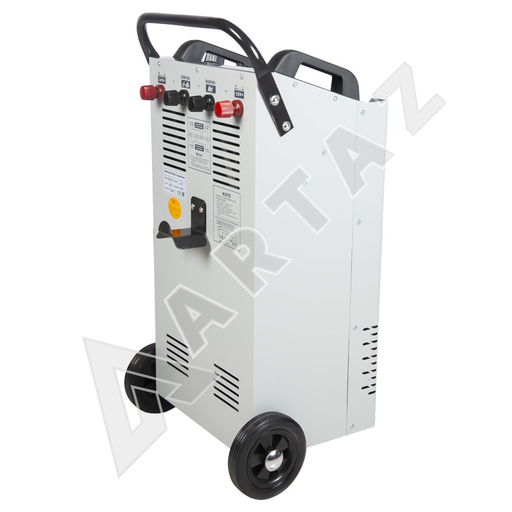 WDK-Start1250 оснащено шестью ступенями регулировки тока зарядки с диапазоном от 11 до 50 А, что позволяет адаптировать процесс под разные типы аккумуляторов. Максимальный пусковой ток составляет 1250 А, обеспечивая быстрый и надежный запуск двигателя. Модель поддерживает два режима зарядки — быструю и медленную, что увеличивает срок службы аккумуляторов и повышает эффективность восстановления заряда. Устройство выполнено на трансформаторной базе и оборудовано механическими стрелочными вольтметром и амперметром для удобного контроля параметров.