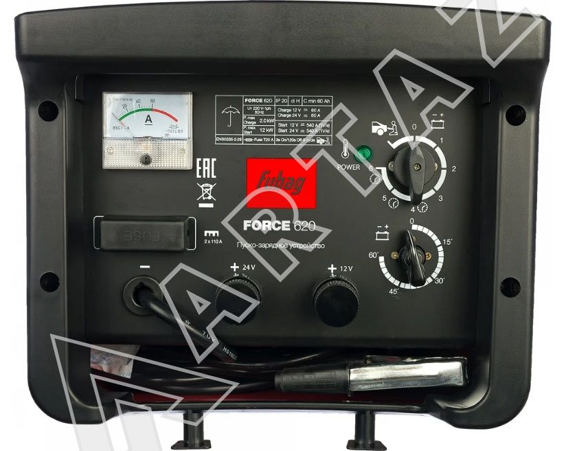Пуско-зарядное трансформаторное устройство 12 и 24В 540А Fubag, емкость аккумулятора от 60 до 1000 А·ч