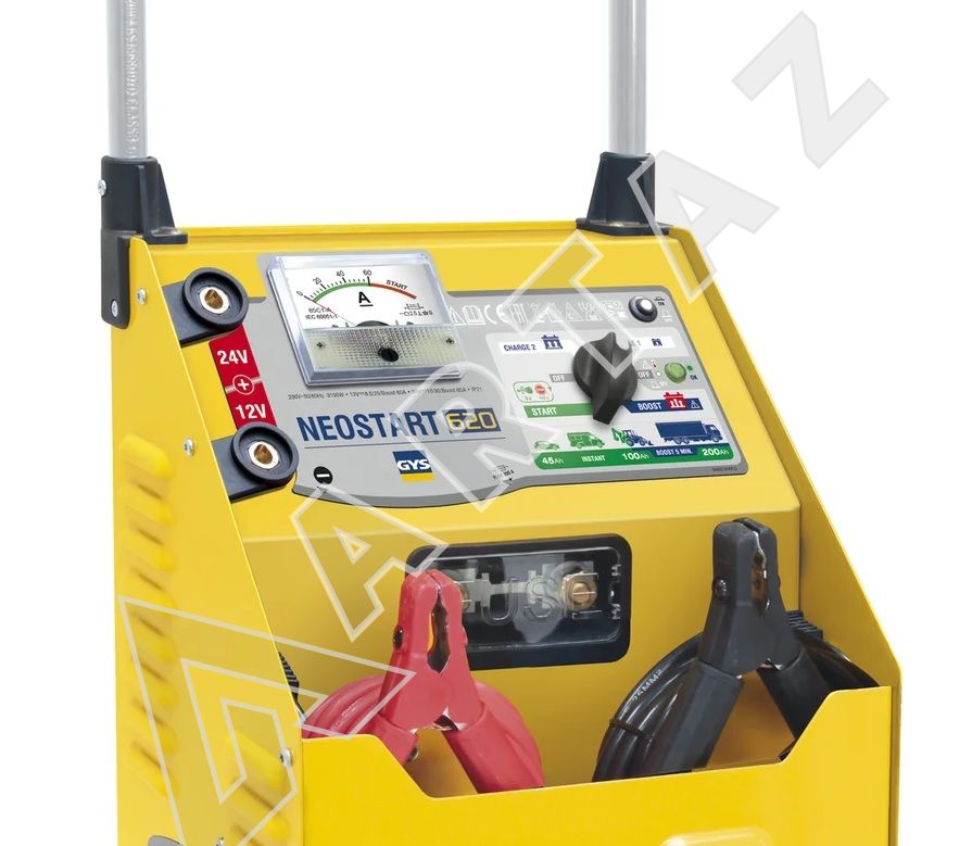 Пуско-зарядное устройство GYS NEOSTART 620 представляет собой профессиональный инструмент для комплексного обслуживания аккумуляторов с напряжением 12 и 24 В. Оно предназначено для использования в автосервисах и специализированных станциях технического обслуживания, где требуется надежный и эффективный пуск и заряд различных аккумуляторных батарей.