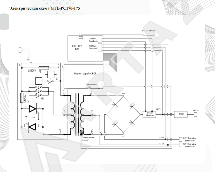 Комплект поставки GTE-PC170 Пуско-зарядное Трансформаторное устройство 6, 12 и 24В