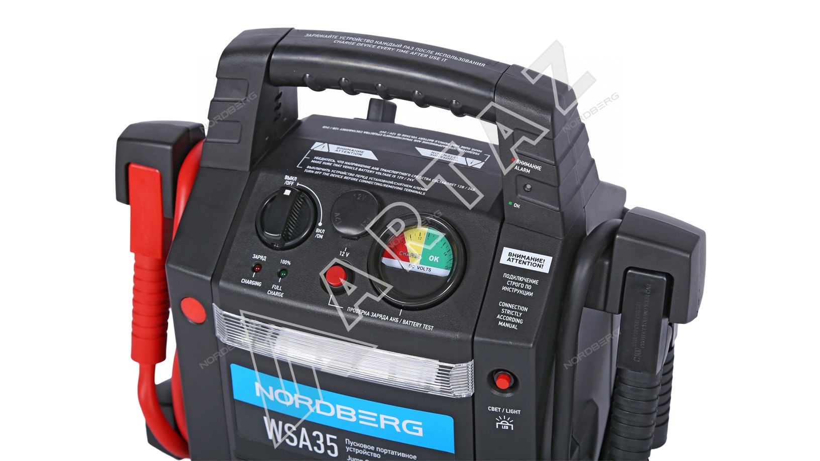 Пусковое устройство бустер 12/24В, максимально пусковой ток 2400А,своя емкость 44 Ач, функция Power Bank WSA35 Nordberg