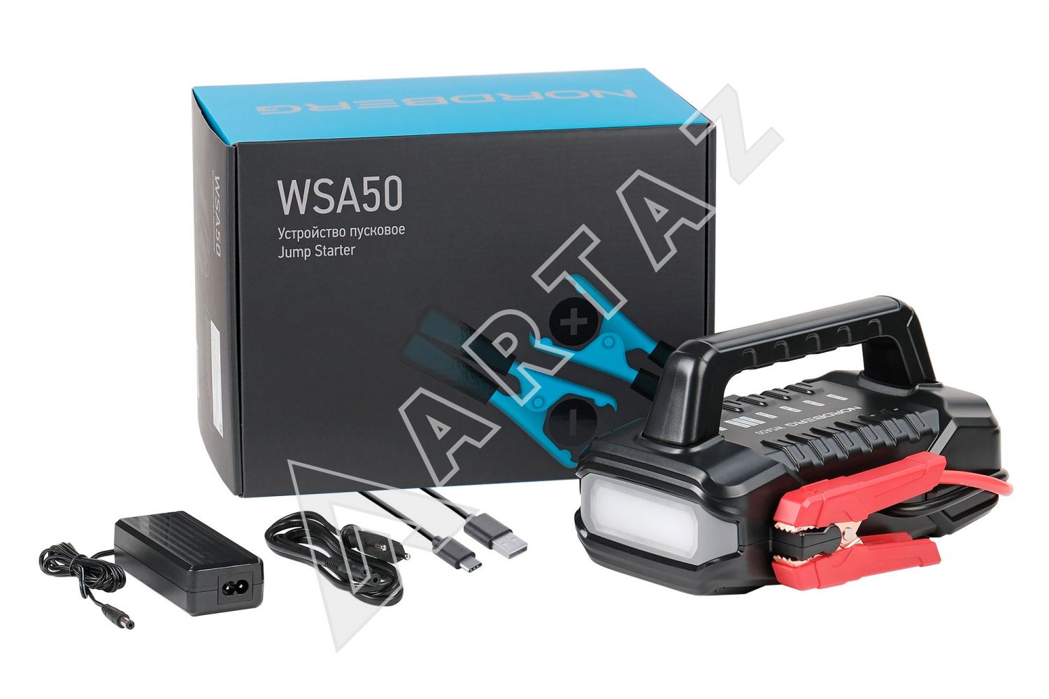 Пусковое устройство-бустер Nordberg WSA50 56 А·ч, 2000 А пика, литиевый аккумулятор, встроенный фонарик, Power Bank Nordberg